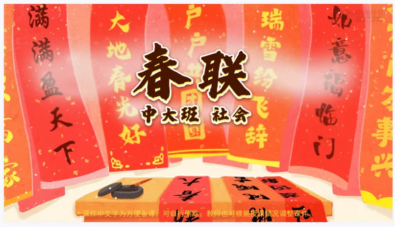 >幼儿园中/大班社会——《春联》PPT+教案+活动反思+纸面教具分享