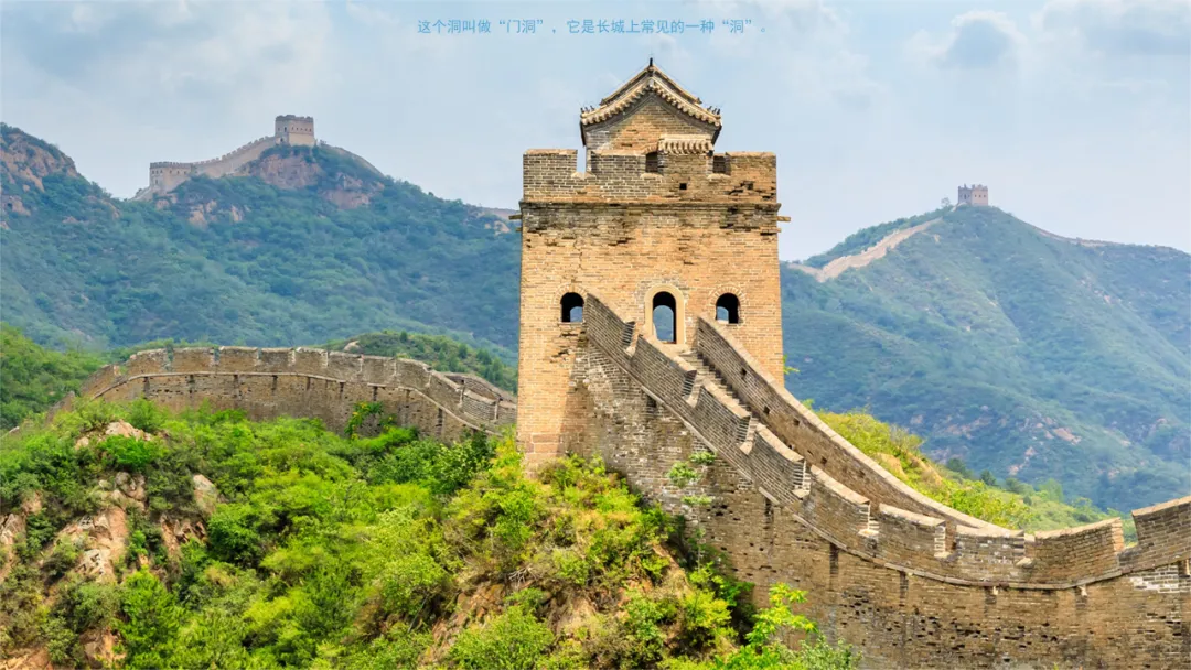 小结:这个洞叫做“门洞”,它是长城上常见的一种“洞”。长城,又叫做万里长城,它高大、坚固、绵延不绝,是世界上最长的军事防御工程,在很久以前是用来抵挡敌人入侵,保护人们安全的长城上有很多很多“洞”,在抵御敌人上,这些“洞”发挥了巨大的作用。