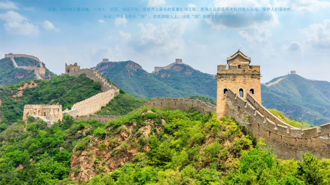小结:长城上的城墙、楼台,甚至是每一个小小的孔洞,都凝聚着古代工程师们的智慧与汗水。这座跨越千年的宏伟建筑,是我们中华民族的珍贵宝藏,是我们的象征与骄傲,我们要加倍珍惜它、保护它,让这份辉煌与奇迹永远传承下去。