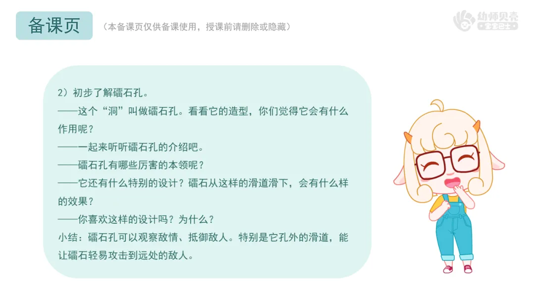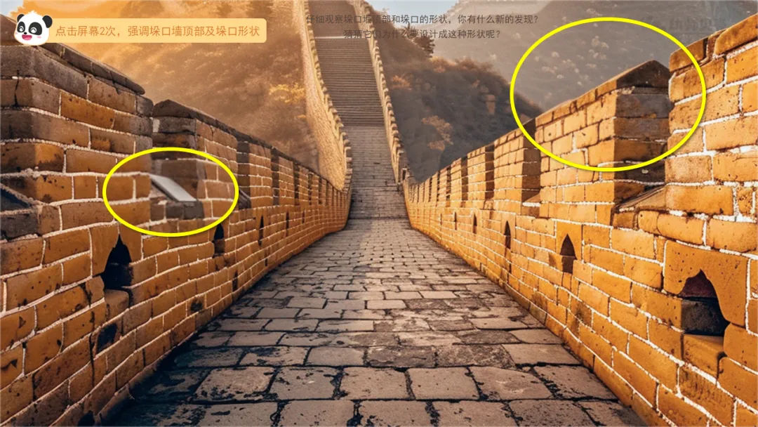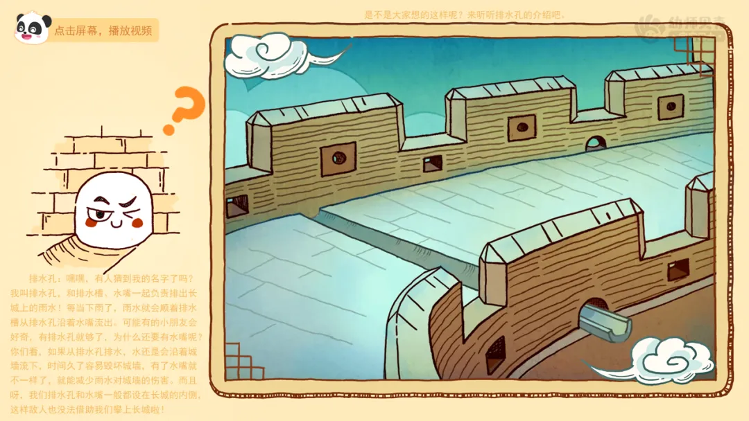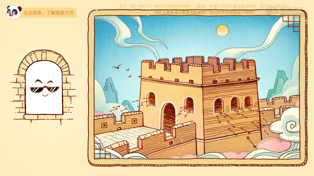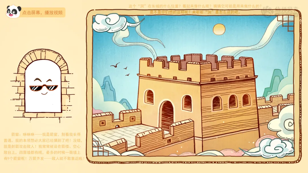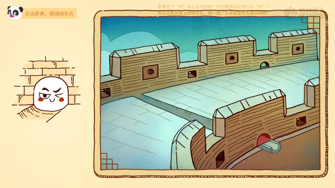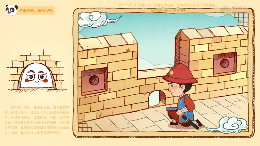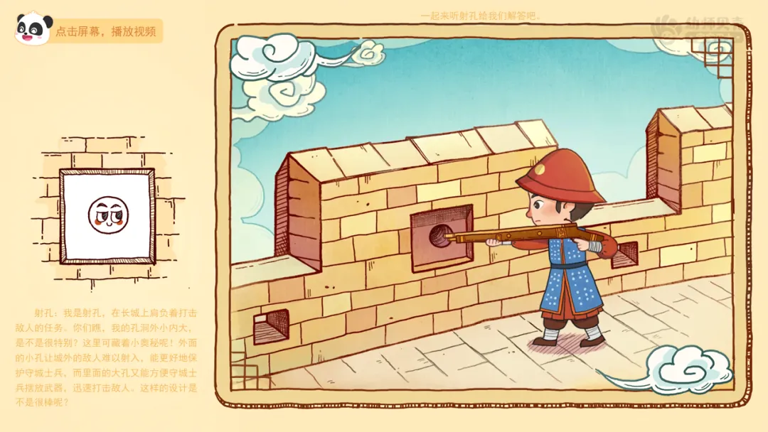 ——刚刚我们一起认识了长城上的哪些“洞”?这些“洞”的设计让你感觉怎么样?