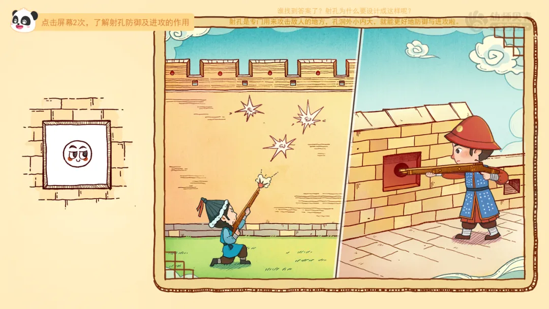 小结:射孔是专门用来攻击敌人的地方,孔洞外小内大,就能更好地防御与进攻啦。