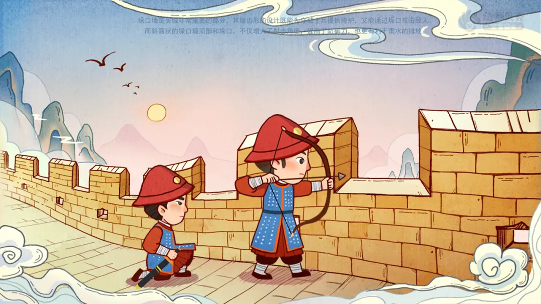 小结:垛口墙是长城非常重要的部分,其锯齿形的设计既能为守城士兵提供掩护,又能通过垛口攻击敌人。而斜面状的垛口墙顶部和垛口,不仅增大了射击角度,提高了防御力,也更有利于雨水的排放。