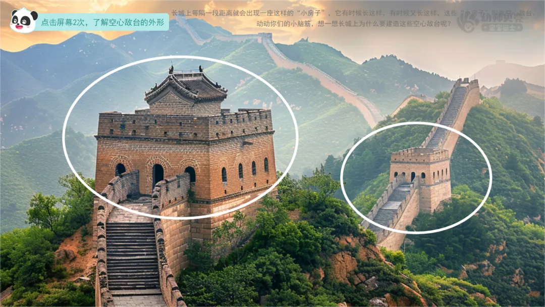 ——动动你们的小脑筋,想一想长城上为什么要建造这些空心敌台呢?