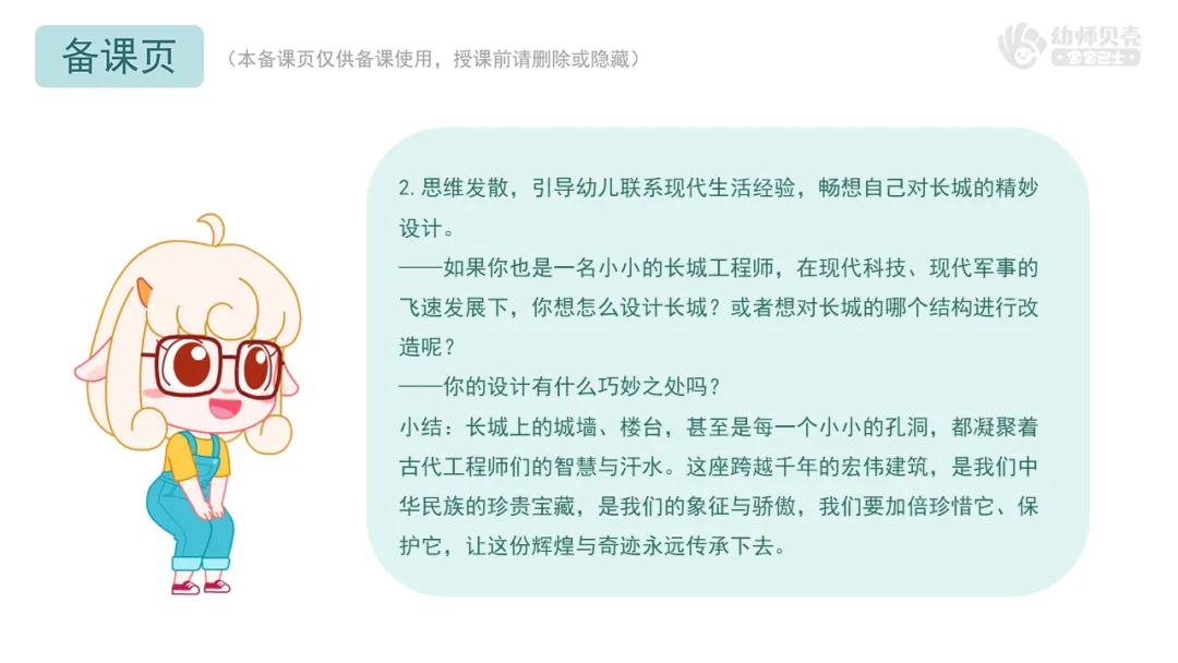 l萌发对祖国的骄傲与自豪之情,感受古代工程师建造长城时的智慧。