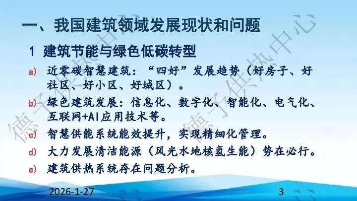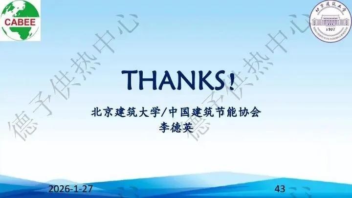 1月21日至23日,由北京德予供热科技发展中心主办“2026智慧供热与绿色低碳技术应用交流暨节能设备展览展示大会”在山西临汾顺利落幕。以下为中国建筑节能协会总工程师/北京建筑大学教授博导李德英分享报告内容,欢迎借鉴学习。