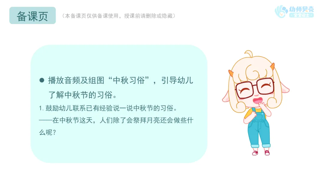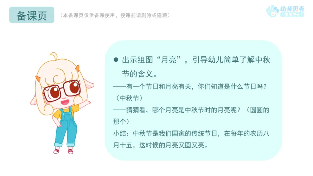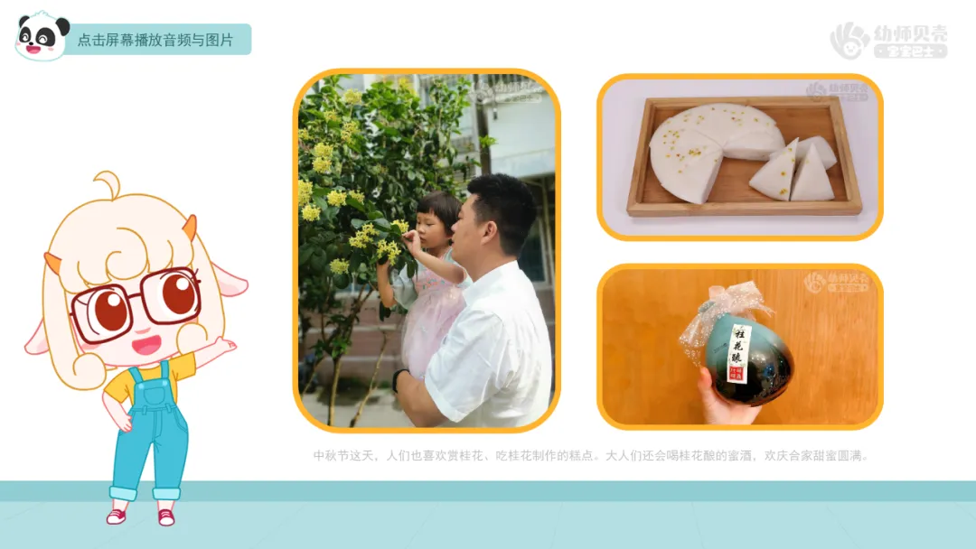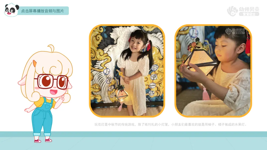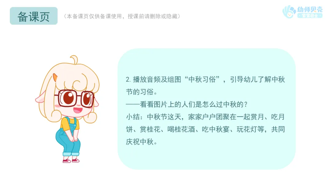 ——关于中秋节的来历有一个美丽的传说,我们一起来听美美老师介绍一下吧。