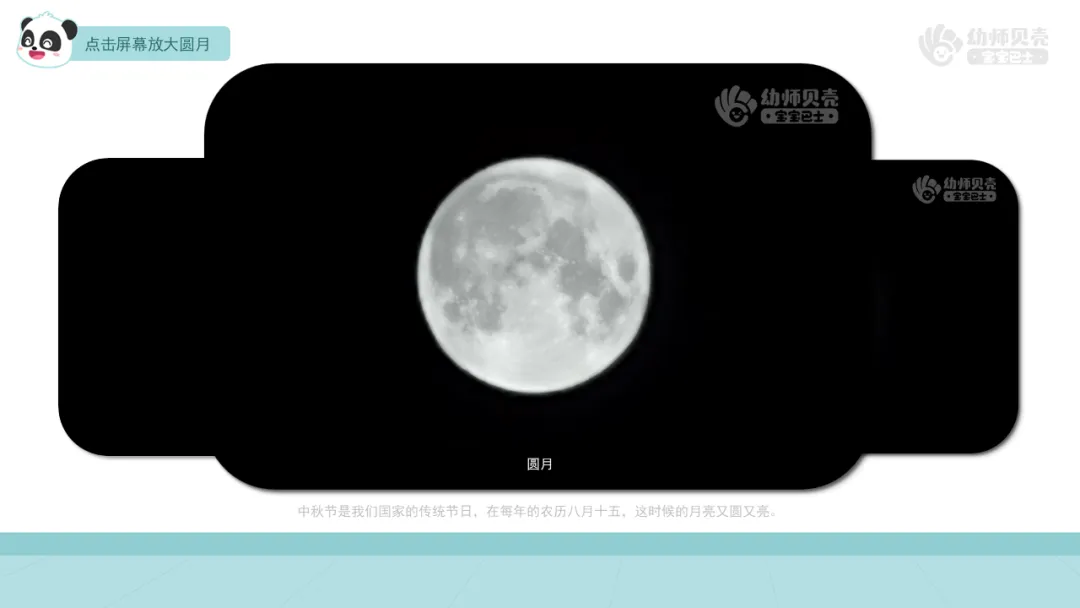 l出示组图“月亮”,引导幼儿简单了解中秋节的含义。