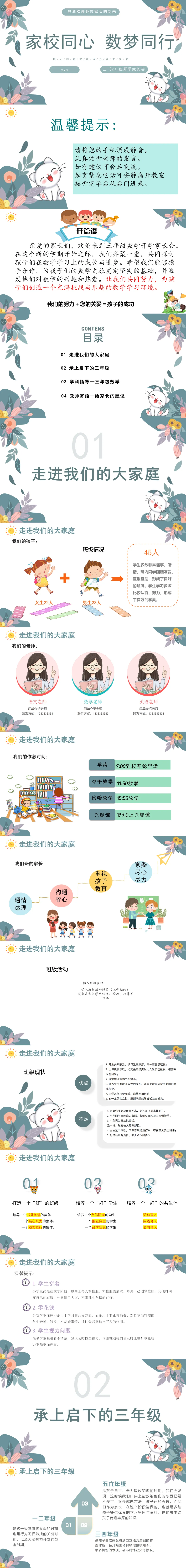 大家好!今日分享《【三下】【家校同心 数梦同行】开学家长会课件》PPT电子版可编辑。