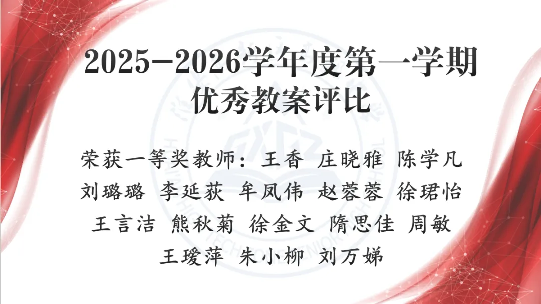 2025-2026学年度第一学期优秀教案评比结果如下: