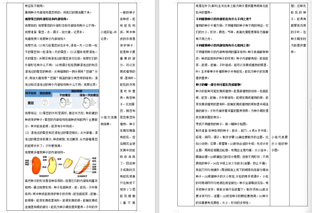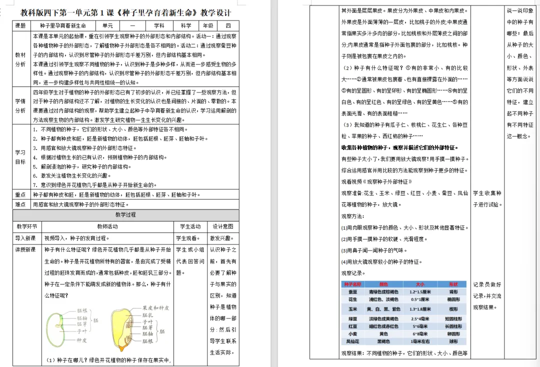 >【科学教案课件】教科版小学科学四年级下册表格配套教案课件(含反思)《1.1种子里孕育着新生命》