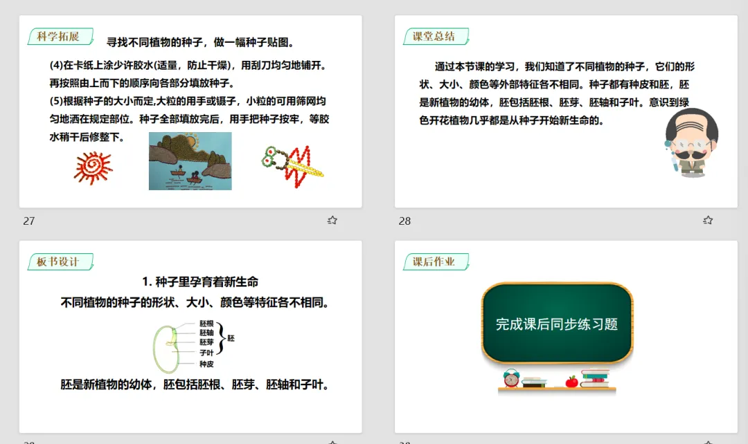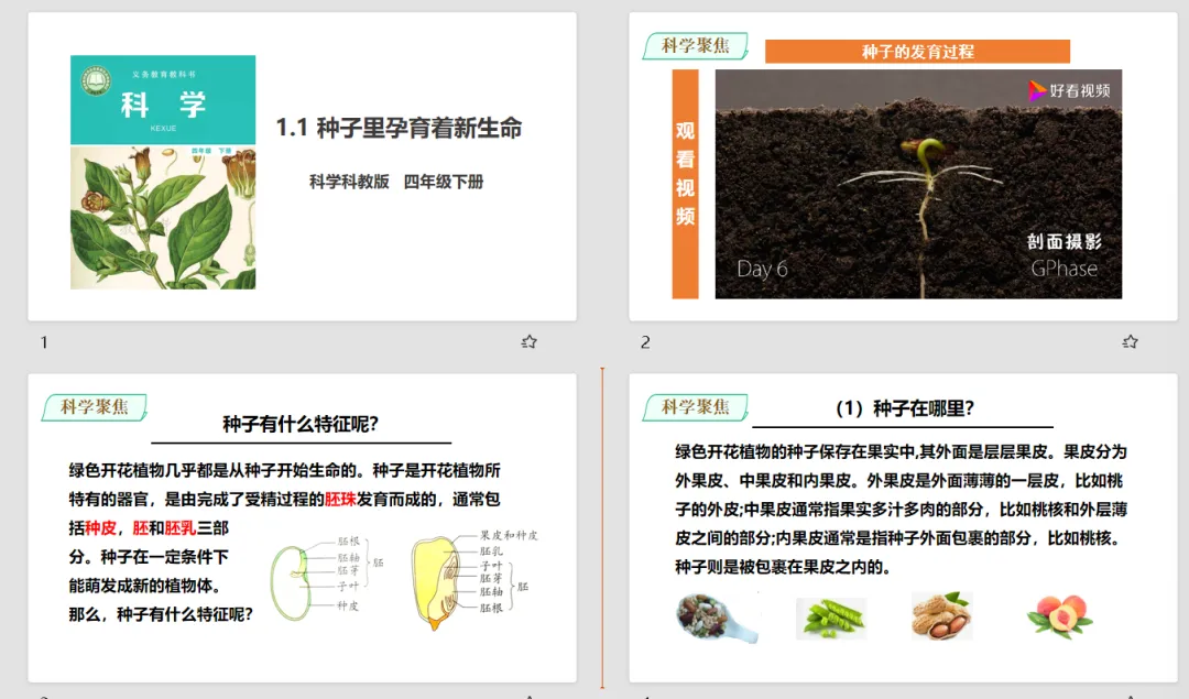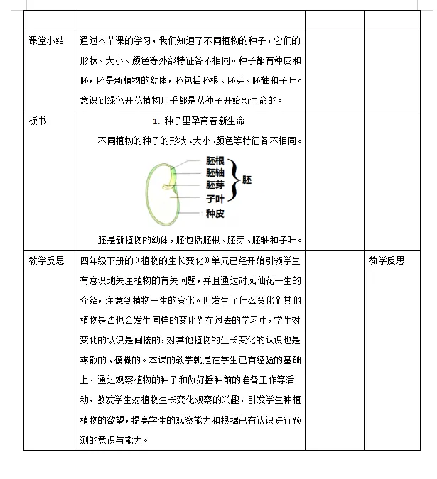【科学教案课件】教科版小学科学四年级下册表格配套教案课件(含反思)《1.1种子里孕育着新生命》