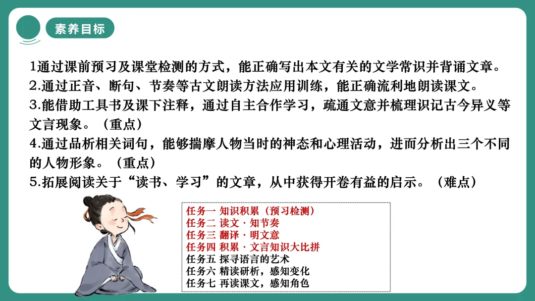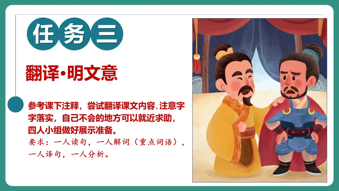 3.能借助工具书及课下注释,通过自主合作学习,疏通文意并梳理识记古今异义等文言现象。(重点)