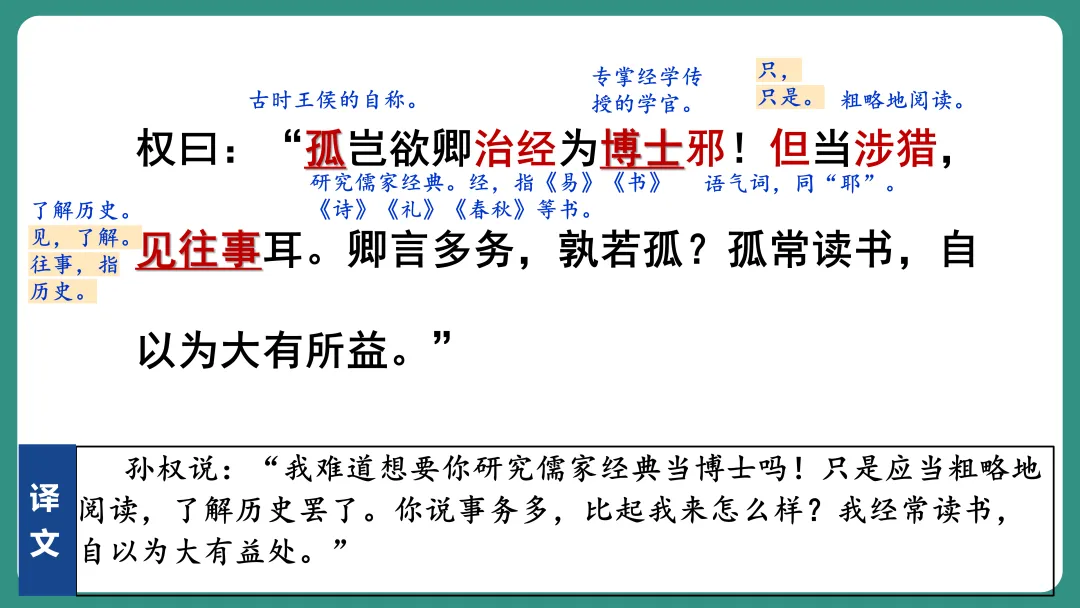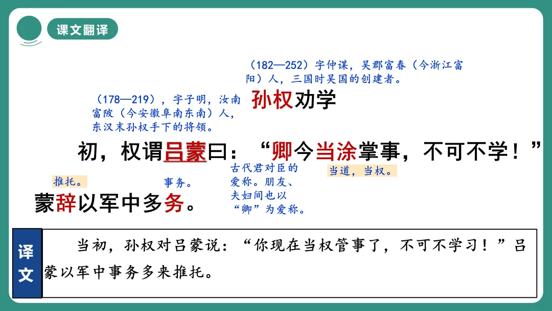 说说你对题目《孙权劝学》中哪个字或词比较感兴趣。