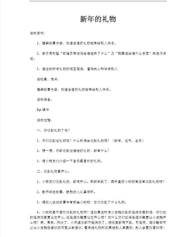 >幼儿园大班_语言_课件《新年的礼物》PPT+教案