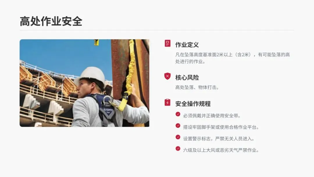 •核心风险:高处坠落、物体打击。
