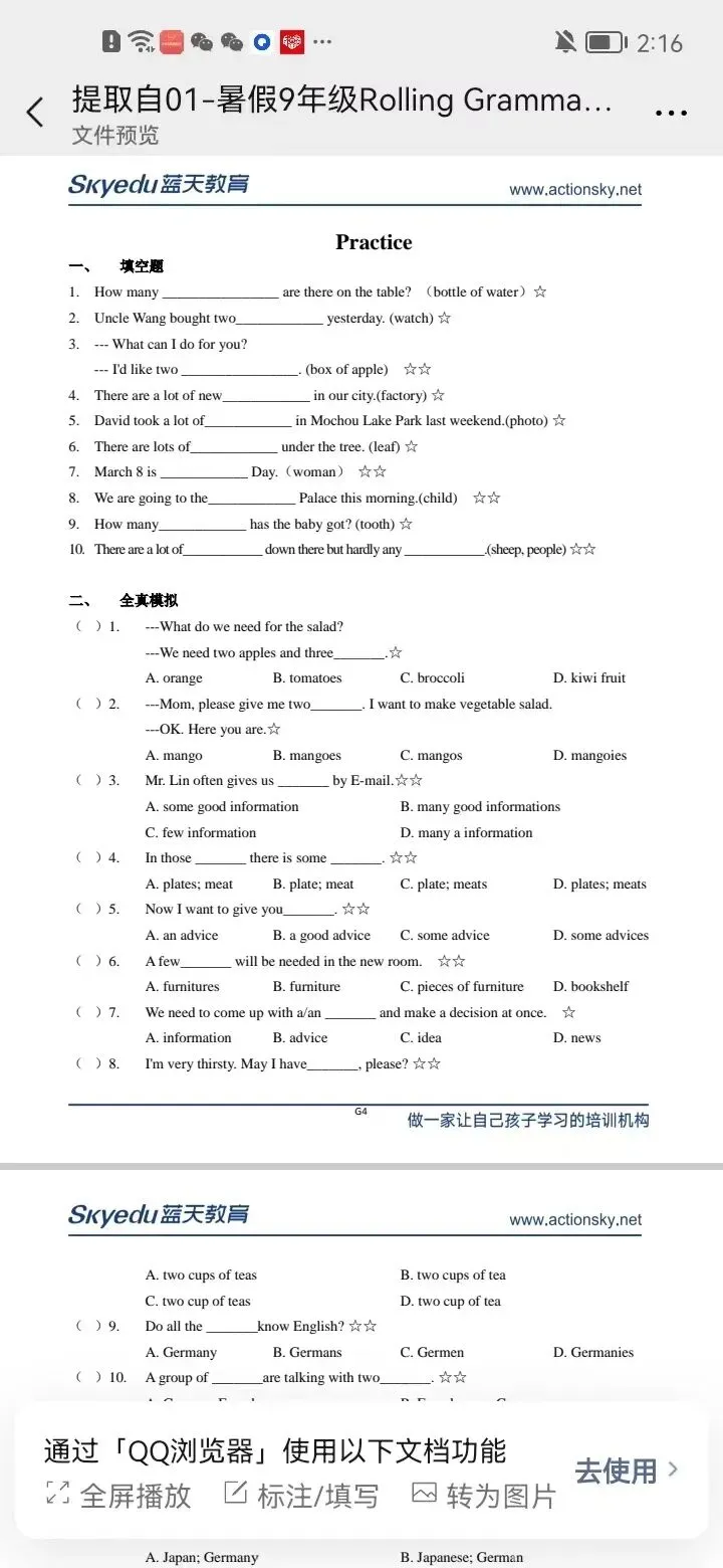 重磅资料!最新蓝天初中英语四季讲义(尖子/精英/培优/素养)这是一套系统、实用的初中英语备考,专为七至九年级学生设计......