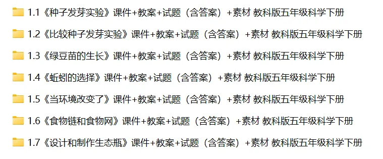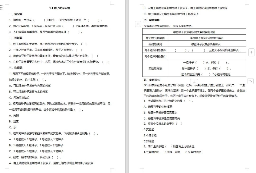 >【科学教案课件】教科版小学科学五年级下册表格配套教案课件(含习题)《1.1种子发芽实验》