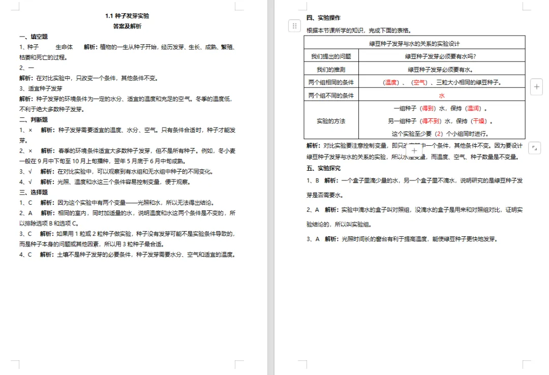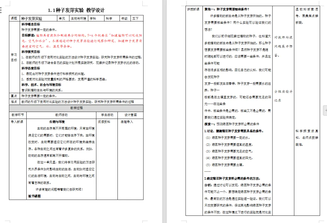 【科学教案课件】教科版小学科学五年级下册表格配套教案课件(含习题)《1.1种子发芽实验》