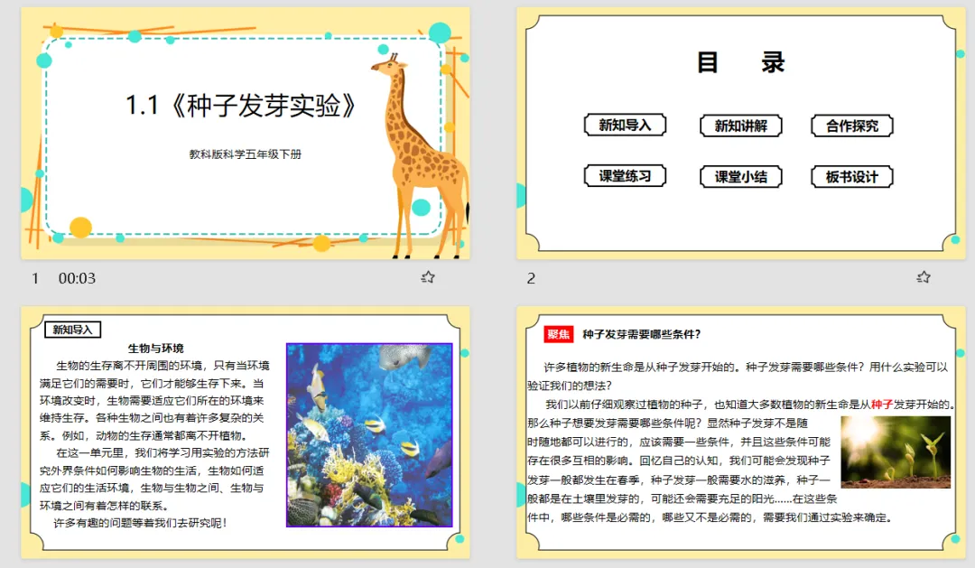 【科学教案课件】教科版小学科学四年级下册文本配套教案课件(含实验视频)《1.1种子里孕育着新生命》