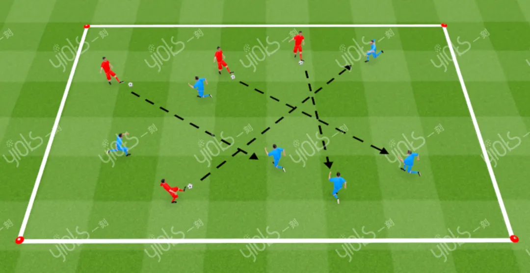 3. 环节3:队员之间的传球尽量为长距离的直传球,避免面对面的短传接力。