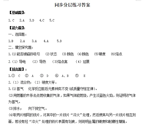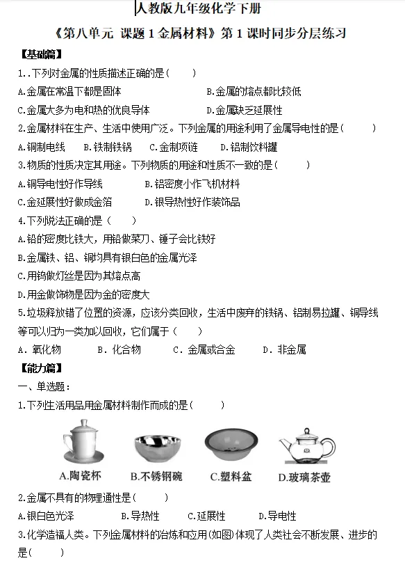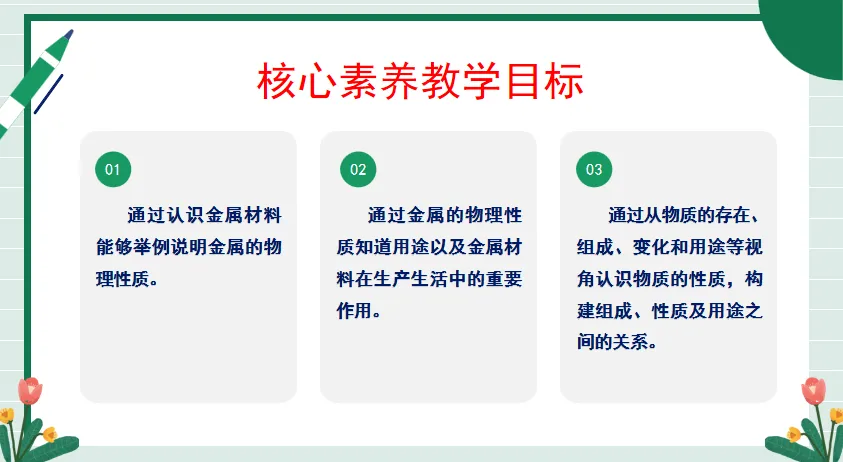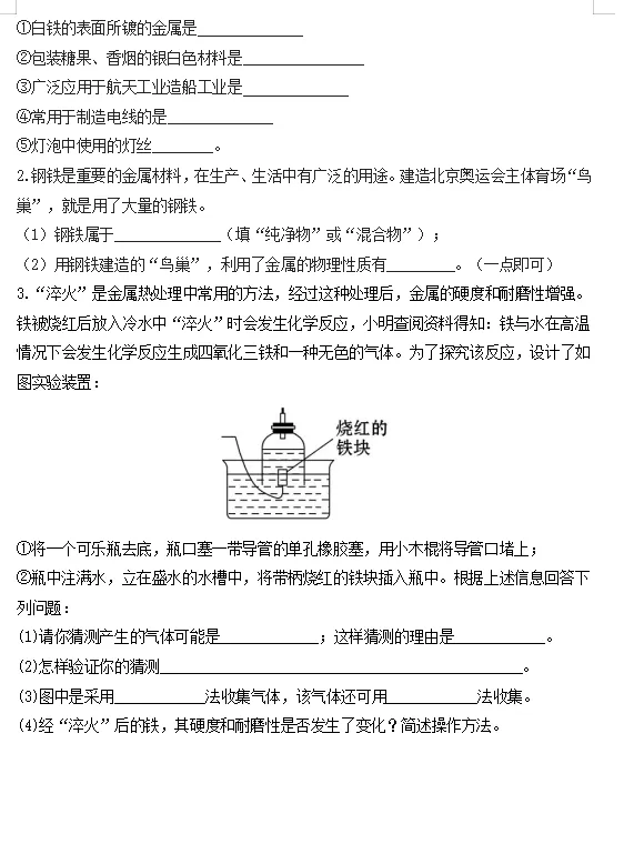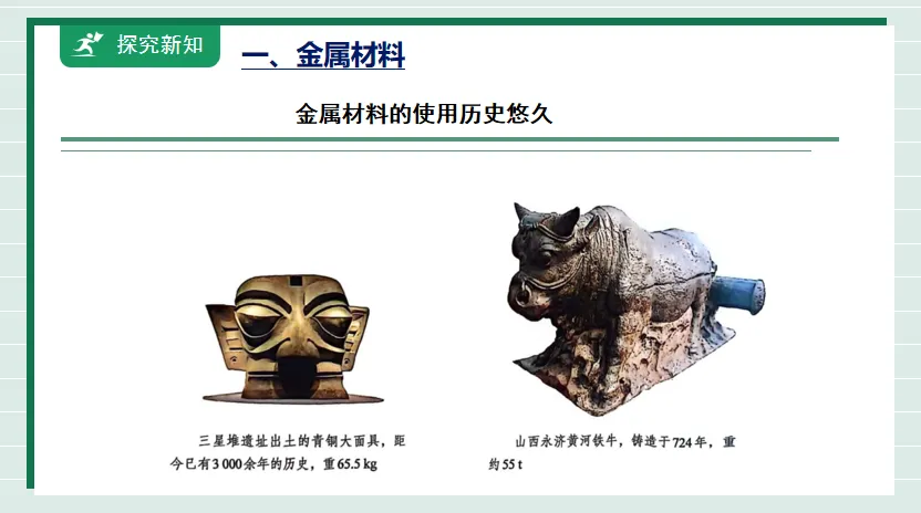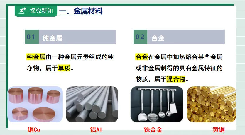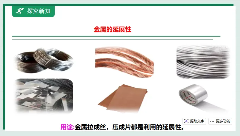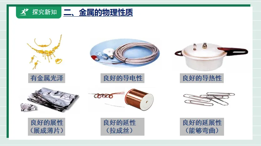 1.通过认识金属材料能够举例说明金属的物理性质。