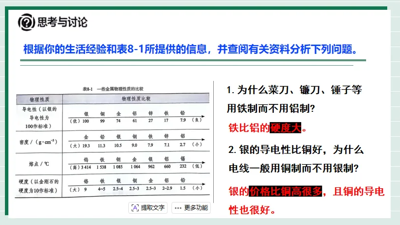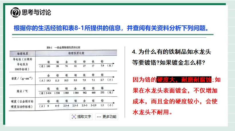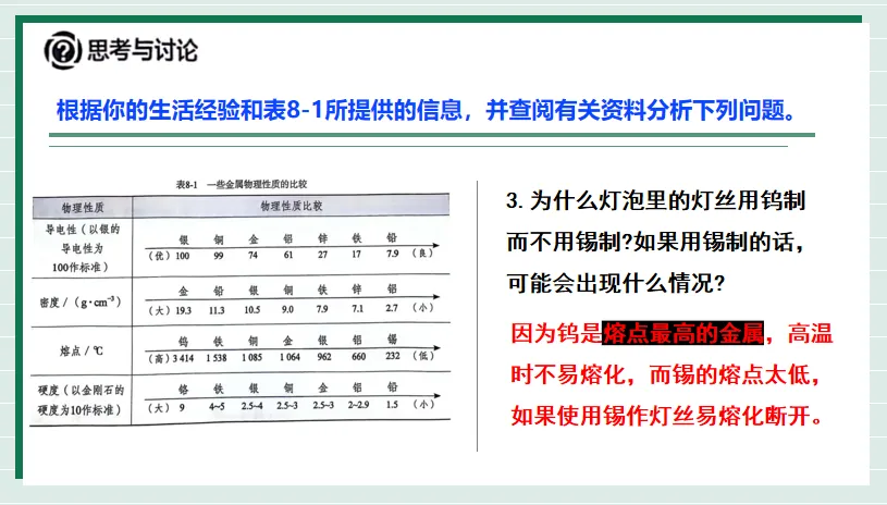教师指导点拨金属的特性: