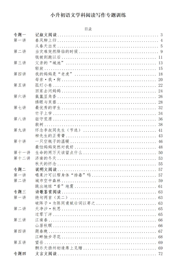 >小升初语文阅读作文专题讲义-XY001