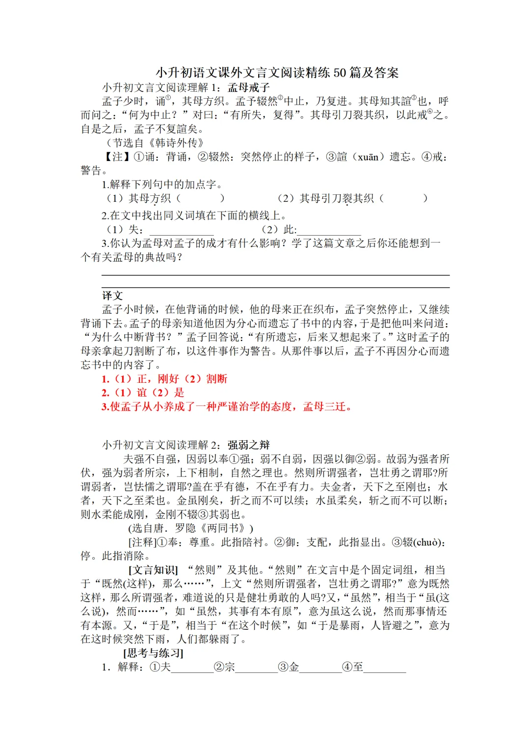 2025-2026七年级寒假复习精品讲义-专题04文言文阅读