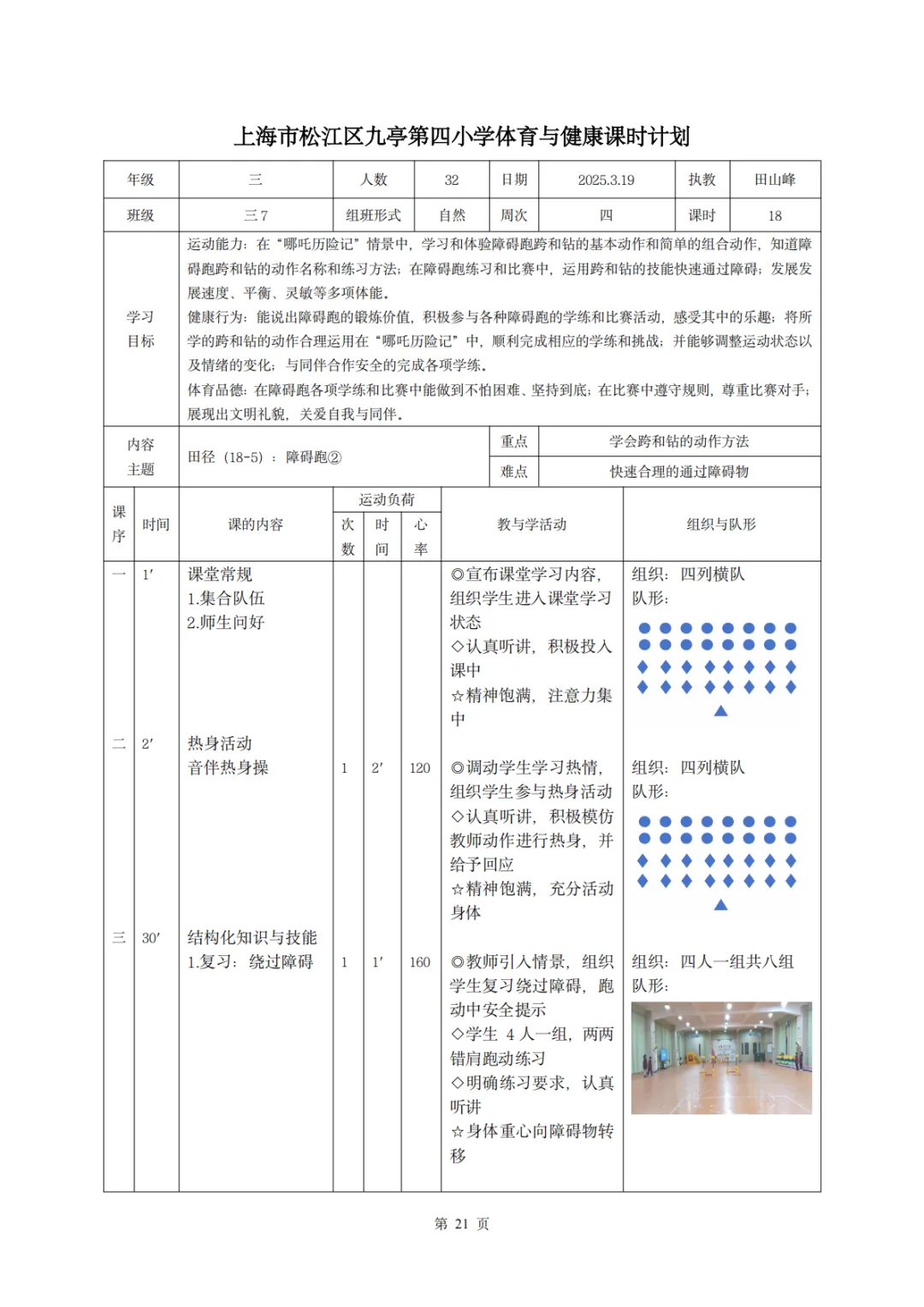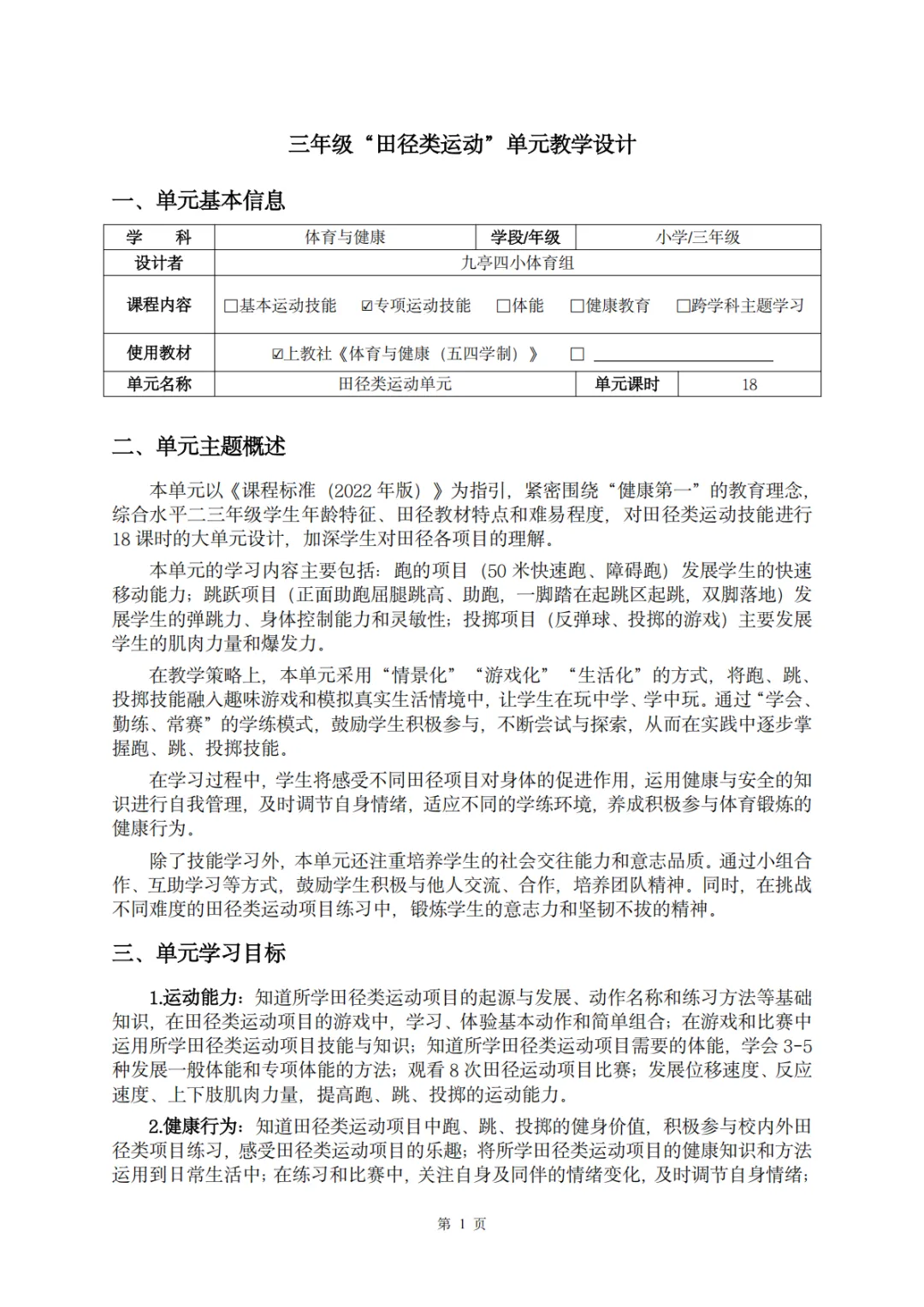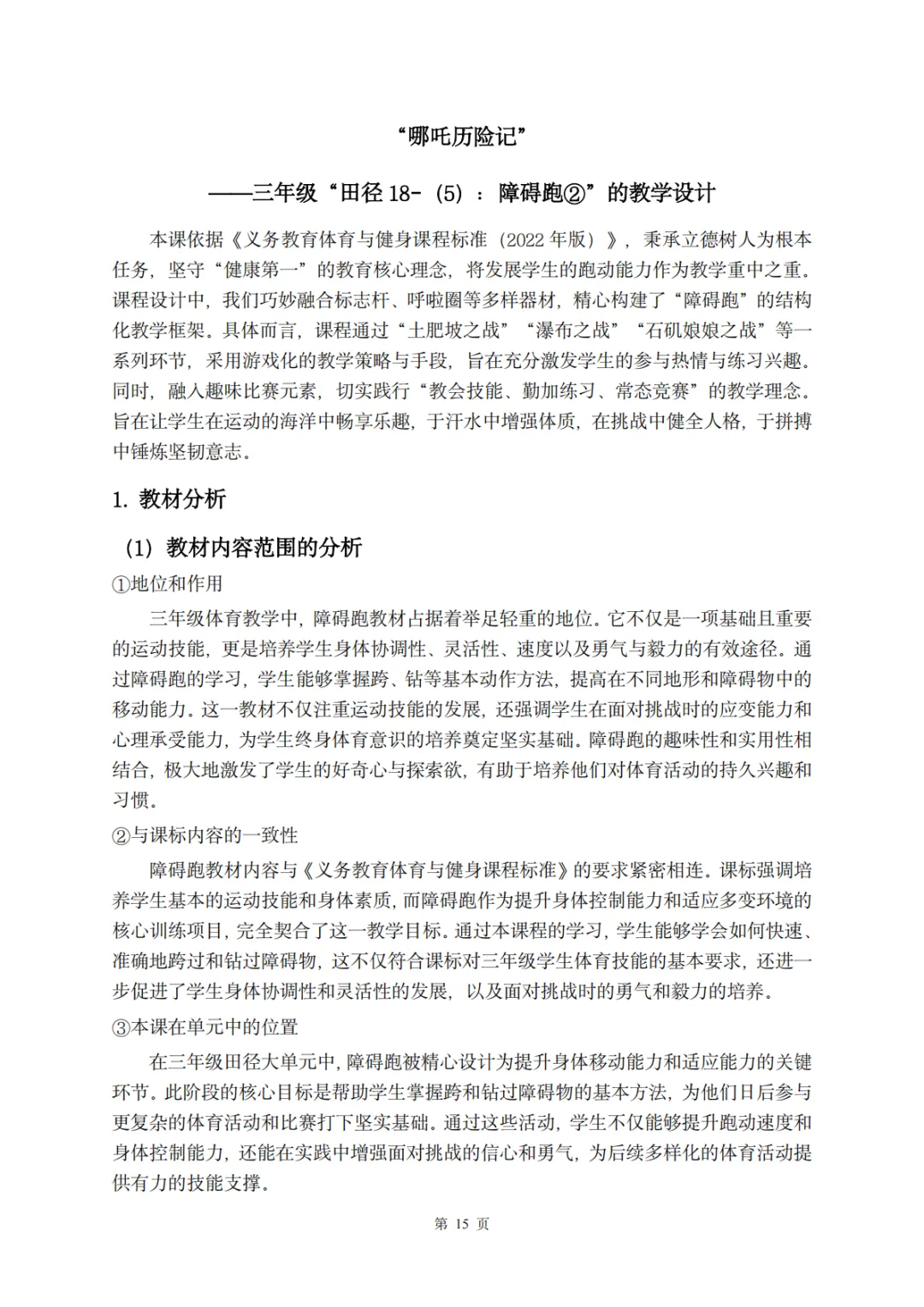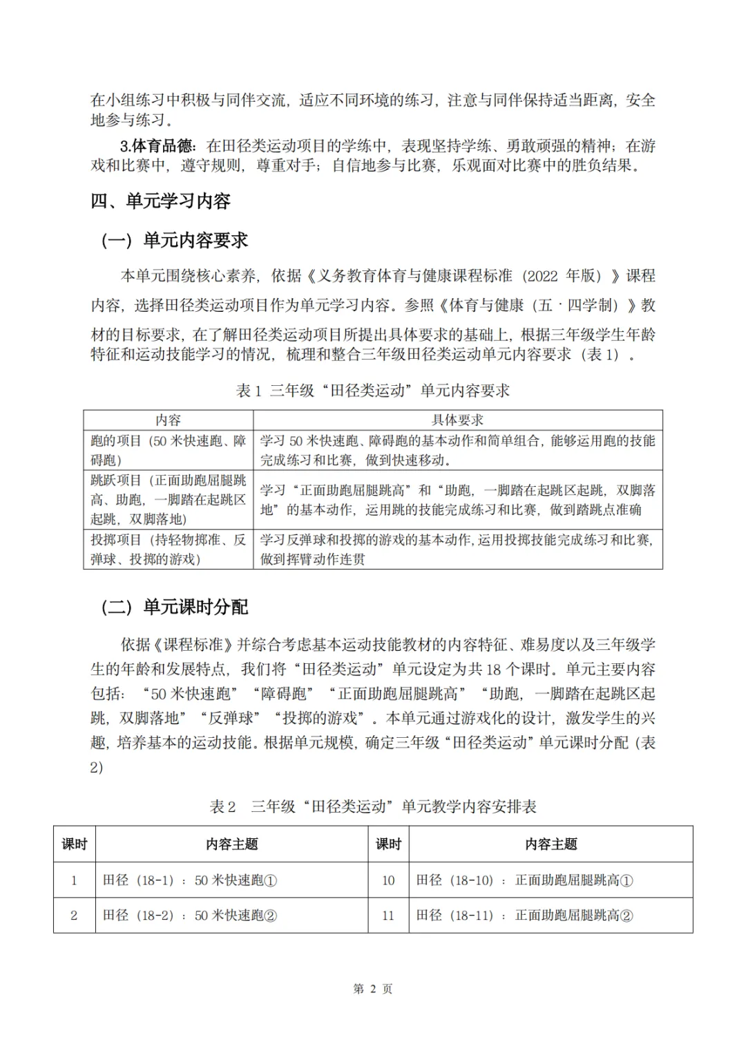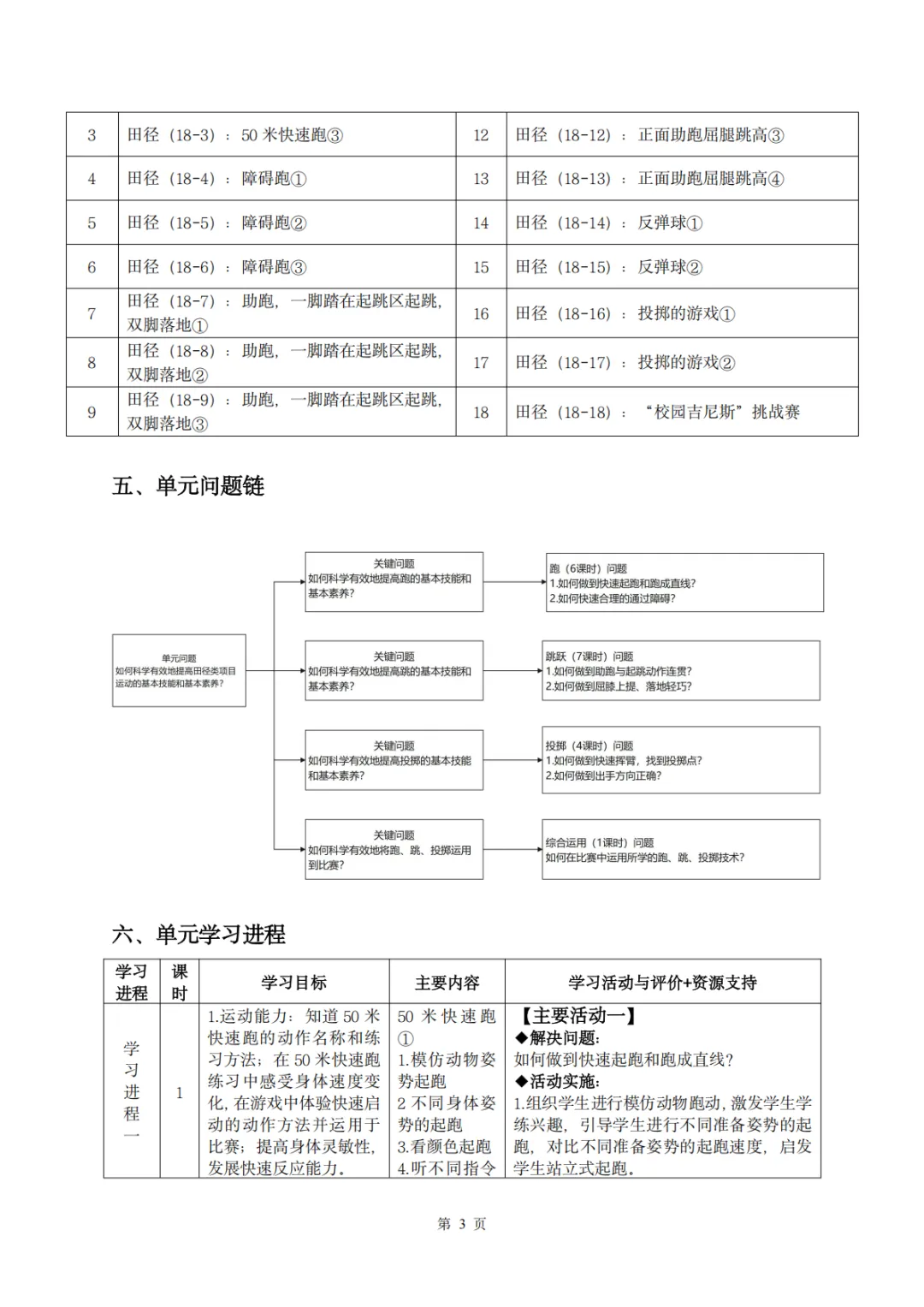 >【教案分享】水平二(三年级)《田径运动》第5次课的设计