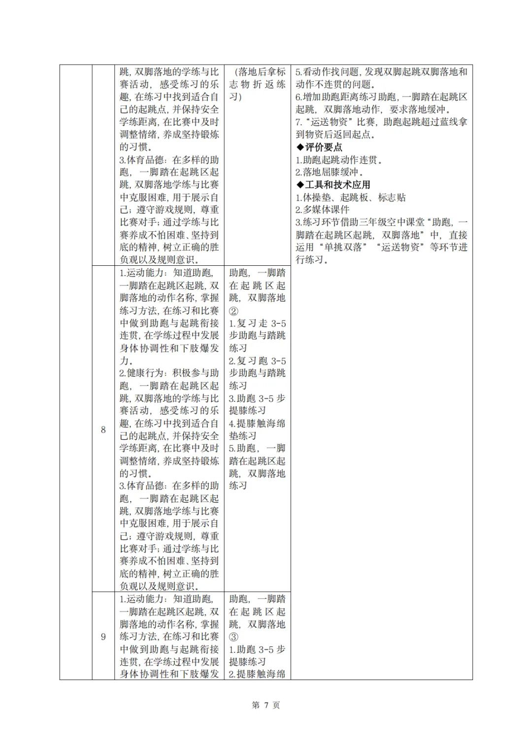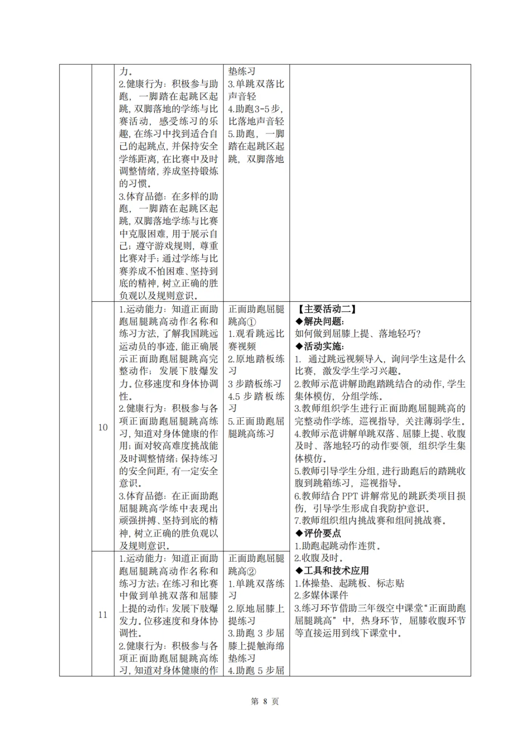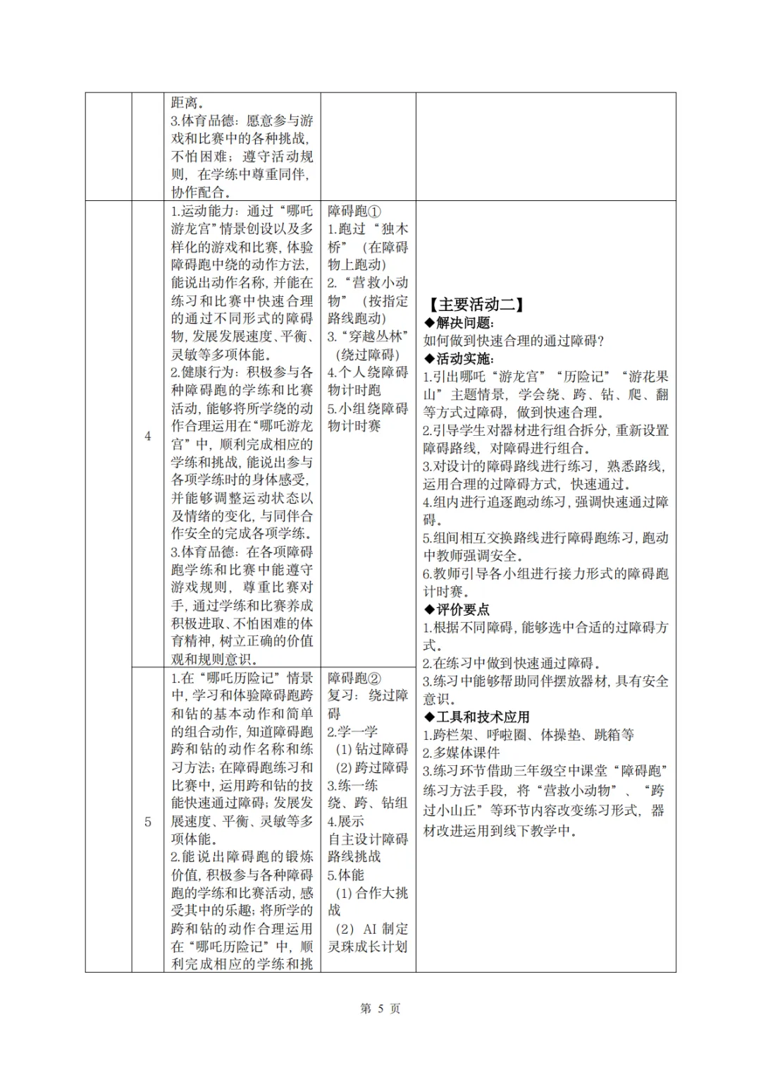 【教案分享】水平二(三年级)《田径运动》第5次课的设计