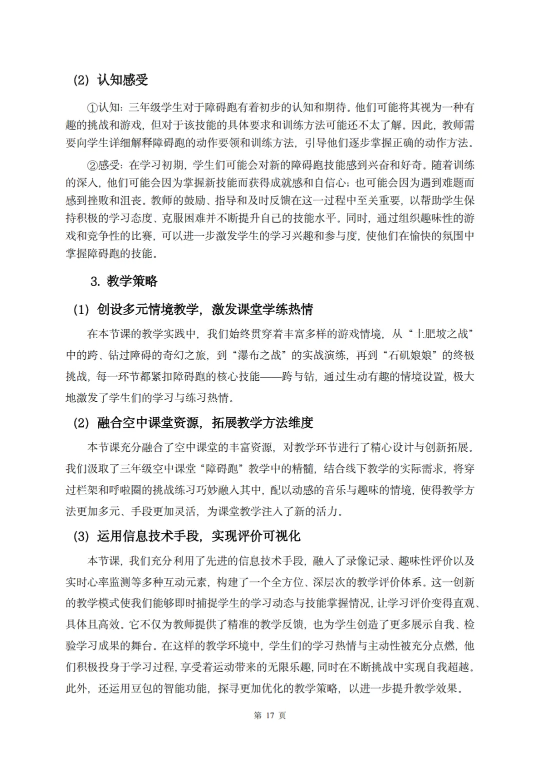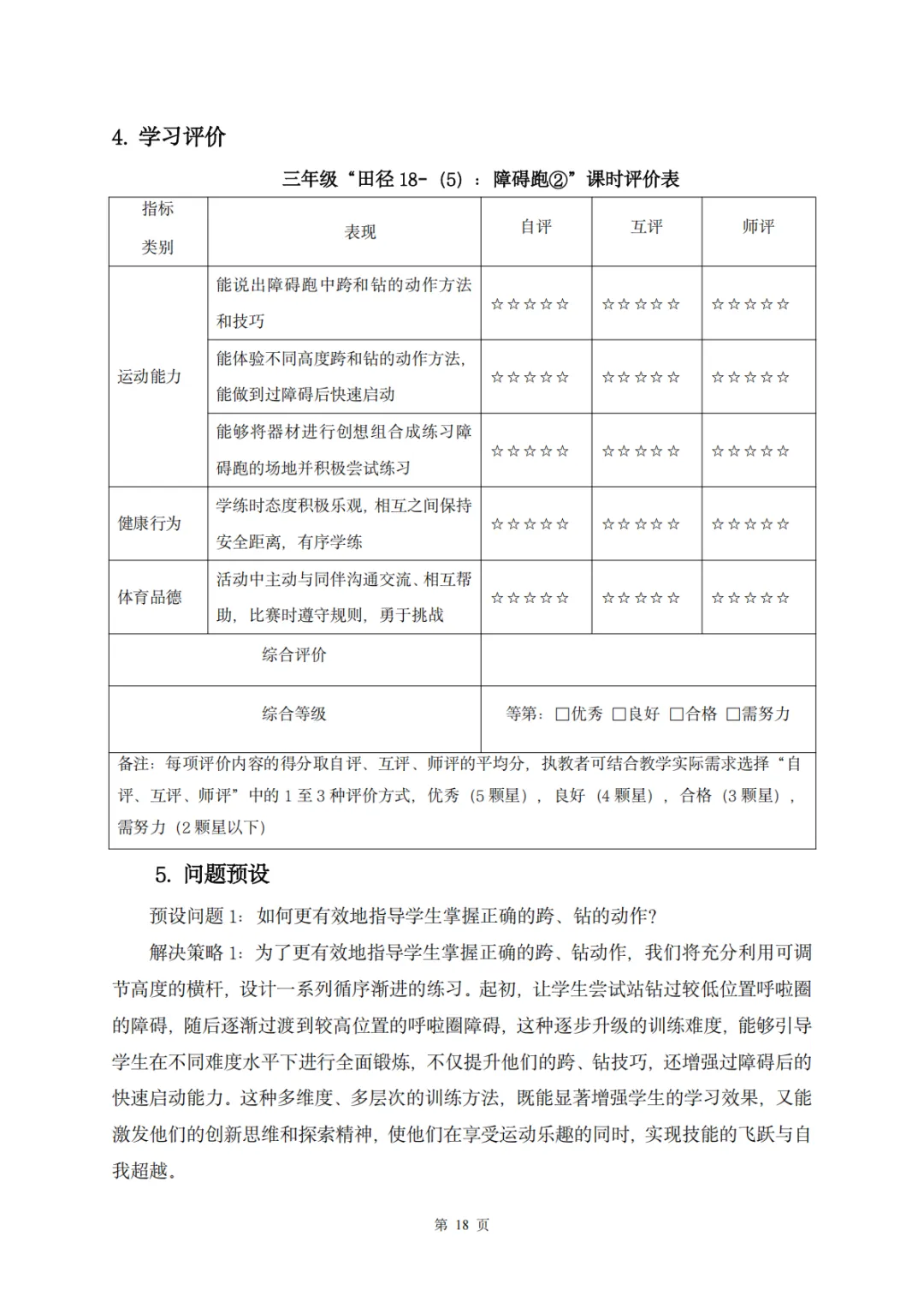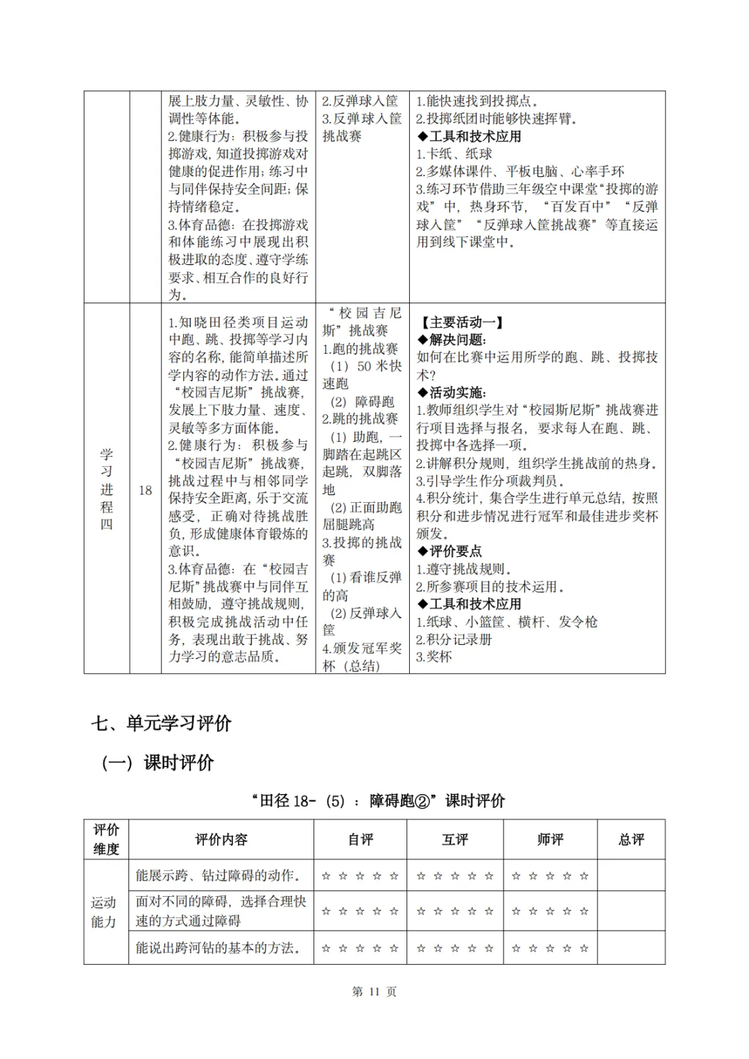 【教案分享】水平二(三年级)《田径运动》第5次课的设计