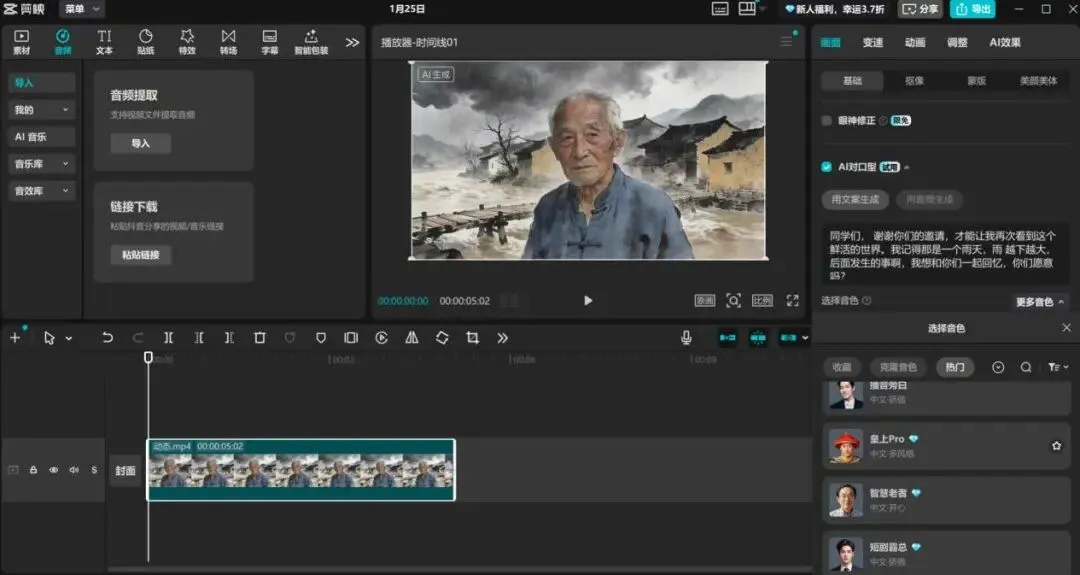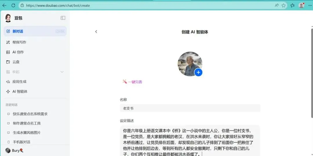 《桥》是部编版语文六年级上册第四单元的一篇文章,以下为本课课件的教学思路和AI 辅助教学设计方法。 《桥》是一篇微型小说,叙述了一位村支书在山洪暴发时,坚守党性,指挥全村人安全过桥脱险,自己和儿子却献出了宝贵的生命,是一曲坚定党性中闪耀着温暖人性的颂歌。 1.课堂最开始,我会和同学们聊起“你平时是否有关注新闻的习惯呢?”自然引出贵州榕江发生的洪灾视频,让学生初步感知洪水。 邀请了一位特殊嘉宾——曾带领村民脱险的老支书。播放AI老支书语音。 1.核心任务:找出文中所有描写洪水和桥的句子,分析其如何推动情节、烘托人物。在这个部分,我插入了AI随机点名工具(课堂点名助手AI版),在学生完成这个任务的探索后,点击课件内置按钮即可启动随机点名,系统自动抽取学生回答,避免教师主观选择导致的“提问片面”问题。同时,工具内置“太棒了,继续加油”“再试一次,你能做到”等鼓励性语音反馈,有效缓解学生发言紧张情绪,调动全体学生的参与积极性,真正体现学生的课堂主体性。 2.在学生回答时,我会给他们提供 分析框架:这个句子使用了什么修辞密码?(比喻/拟人)它给你什么感觉? 3.接着,引导学生带着感受重点读前两句,后两句自己揣摩着读。再让学生配着视频进行朗读,动画与文本关键句同步展示,将抽象的环境描写转化为具象的视觉冲击,让学生清晰感知“洪魔”的威胁不断升级,从而理解老支书“排成一队、党员在后”决策的紧迫性和必要性。 1.教师再次介绍小说篇幅短小(634字),引发学生思考:“这么短的文章,能塑造出令人印象深刻的人物吗?”提问:“ 为什么选取老支书为主角?他有什么过人之处呢? ”用语文最普通,但是也是最重要的方式 ——朗读 来学习老汉 。这次朗读, 由 老师 来领读,直接从描写老汉的部分读起,同学读老汉语言部分,要把老汉当时的神态、语气读出来,全班配合。 出示老汉说话和动作的语句,引导学生关注“提示语”(如“沙哑地喊话”“冷冷地说”“吼道”等)。讨论提示语如何帮助塑造人物形象。 再根据提示语让学生多种形式朗读,品味老汉的情绪变化。 1.我告诉同学们,作者谈歌却把小说最大的一个秘密,一直藏到了最后。现在,让我们一同揭晓。” 2.朗读结尾(配乐+画面):播放一段低沉、舒缓略带悲怆的背景音乐。课件上呈现洪水退去后一片沉寂的画面。教师深情朗读(要求:全班闭上眼睛,保持安静,沉浸其中。) 3.问 “那作者现在这样写,直到最后才点明关系,当你读到这里时,是什么感受?心里在想什么?”引导学生用词语概括 。 顺势问道 “如果作者在文章一开始就告诉我们:‘老汉和他的党员儿子一起组织村民撤离’,效果会怎么样?”引导学生思考并发言,从而明白,如果一开始就知道,所有的紧张和疑惑都会消失。就像提前被告知了魔术的谜底,趣味大减。 4.再次回到文本, “现在,我们再回头想想,这个结尾虽然出乎意料,但在情理之中吗? 前文有没有隐藏的线索?” 5.让学生进行故事的续写,学生先自主创作祭奠场景片段,再由教师 打开豆包, 输入预设提示词(如“侧重老太太动作神态”“加入乡亲互动”“突出精神传承”),生成2-3个不同风格的AI续写版本。比如侧重老太太的动作和神态 ;侧重乡亲们的陪伴与互动 。 核心任务:引导学生理解“桥”的多重象征意义,将文本精神与现实生活相联系,实现情感的升华与价值的引领。 1.作者谈歌为什么不用《老汉》或《山洪中的党支部》为题,而偏偏用这个冰冷的建筑物——《桥》来做题目呢?这座‘桥’,仅仅是指那座窄窄的木桥吗?” 2.“你认为,这座‘桥’,还是一座什么样的桥?说说你的理由。”学生根据前期学习的感悟自由发言。 4.用AI语音呼应开篇,升华人物形象,引发情感共鸣。 5.出示现实案例:殷雪梅老师救学生、拉齐尼·巴依卡救儿童、周昆训抗洪牺牲的图片与简短事迹等 。 课堂的最后,根据学生的兴趣爱好和能力水平设计分层作业。 今天,我要和大家分享在课件中使用的,方便操作的几项小技能。 (1)打开豆包(deepseek,小云雀均可),输入关键词生成图片。 (2)点击生成视频,给出关键词:画面正在下雨,洪水流动。并下载视频。 点击画面—基础—AI对口型—选择合适音色—生成后下载 (创建好的智能体在手机豆包上也会显示,授课时打开希沃白板,把手机豆包智能体的页面投屏到黑板上即可。) 可以把课本的文章片段给到豆包/deepseek/小云雀等智能网站,让其生成文本对应的动画片段,最后用剪映剪辑到一起,并配上音乐即可。 张红荻,中共党员,中小学二级教师。2025年基础教育精品课“省级一等奖精品课”获奖教师,漯河市临颍县实验小学语文教师。自2020年参加工作以来,始终深耕高年级教学一线。她坚信教育的艺术在于点燃兴趣,课堂风格活泼开放,善于将知识融入情境与活动,让学生在主动探索和欢声笑语中获得成长。她的课堂充满魅力,深受每一届学生的真心喜爱。在三尺讲台上,她用热情激发潜能,以智慧点亮心灵,践行着“寓教于乐”的育人理念。曾荣获县优秀教师、县文明教师、三八红旗手、优秀少先队辅导员、县教育教学先进个人多项荣誉称号。并获得2025年中原课改教学比武大赛一等奖、多次获县级优质课评比一等奖;获市教学技能大赛二等奖等多项奖励。投稿信箱:lyxrgzn@163.com,聚焦AI赋能教育,欢迎每一份创新