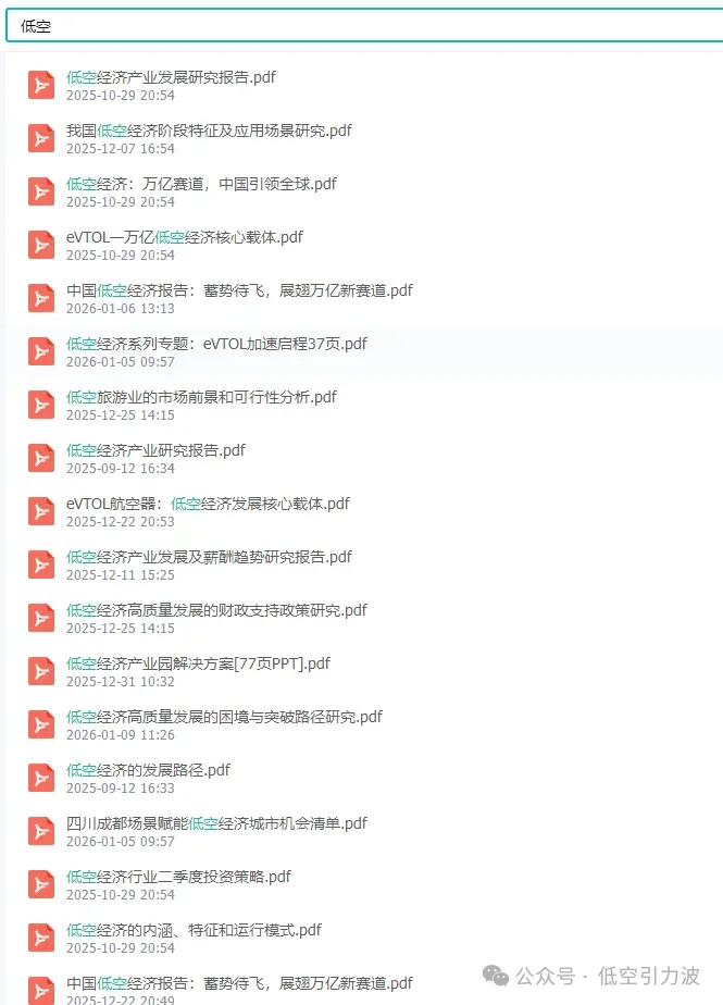了解到很多朋友对低空经济感兴趣,我们专门创建了低空经济资料库知识星球平台,上面已经上传了上千份的学习资料,各种政策研报,专家课件等等,助力大家在低空经济赛道上游刃有余的成长。大家可以通过资料目录,看看有没有自己需要的学习文件。这是全网低空经济资料最多的平台。