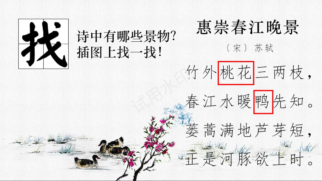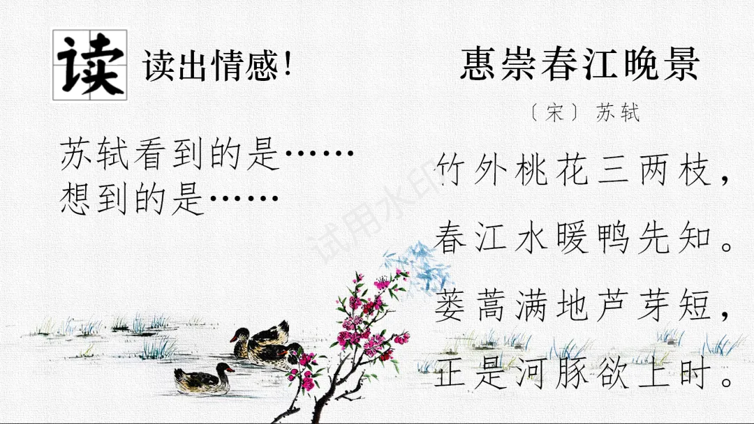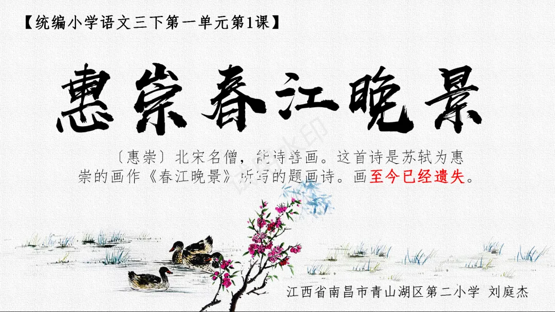 【自制课件】统编三下 第一单元1.《古诗三首·惠崇春江晚景》