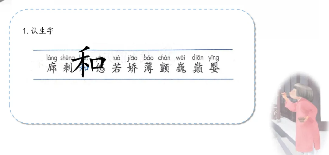 师:课文插图就理解了廊子的意思,真不错,咱们一起来看,知道廊子的意思了吗?看来借助插图也是理解词语的好方法,继续读。师:有什么发现。