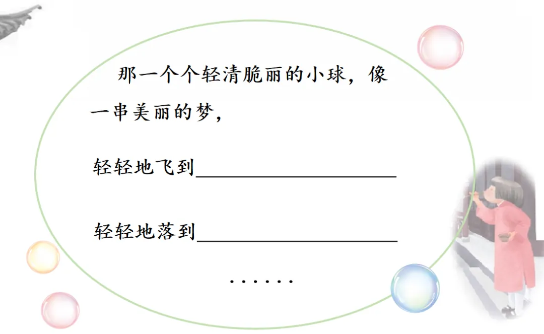 师:所到之处皆是人间最美的地方,想一想这些美丽的泡泡还会飞到哪里?