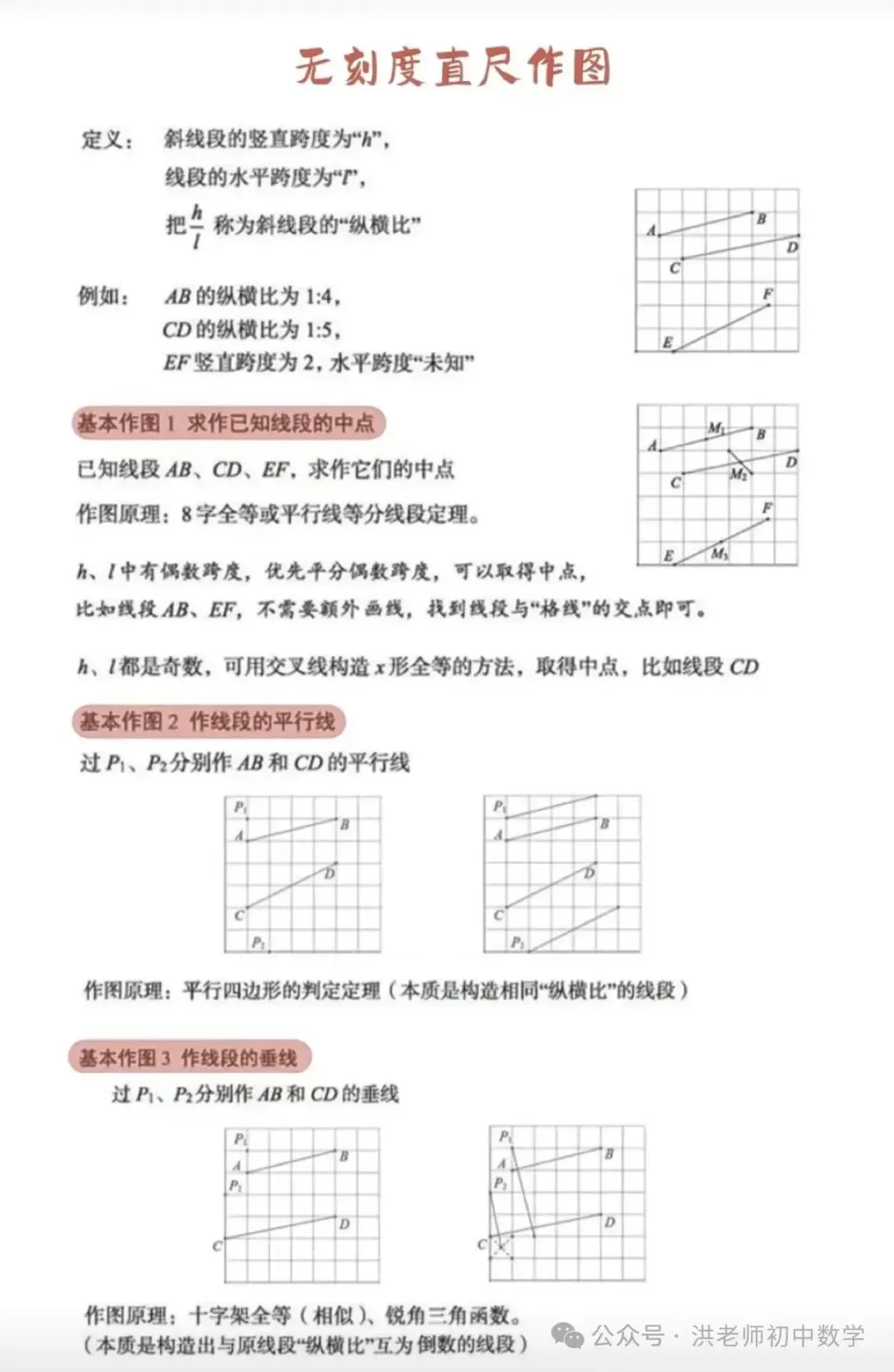 这里介绍一下我无刻度直尺讲义的四个版本,第一是无刻直尺作图教师版和学生版,总结了常见无刻度直尺作图的方法,第二是收集的无刻度直尺作图三百题,收集了近几年中考.月考试卷上的作图题,第三个是我中考复习资料中的一个专题,有105道无刻度直尺作图题,其中不少是我原创的,第四个七八九三个年级同步单元无刻度直尺作图小专题,第五个网格无刻度直尺作图,前四个word版,可以编辑修改,最后是 PDF版.需要的加我微信13870962655,收费的,希望理解.