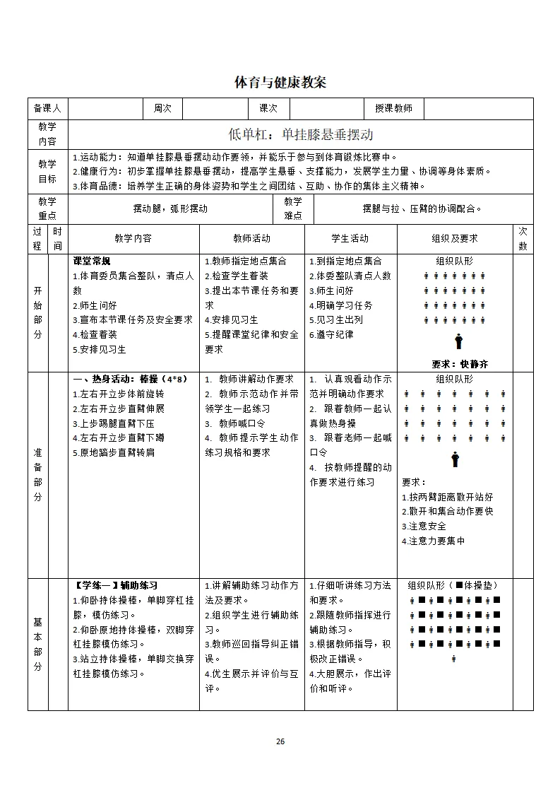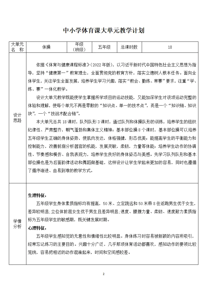 水平三体操18课时大单元教学设计教案课时计划word版高质量