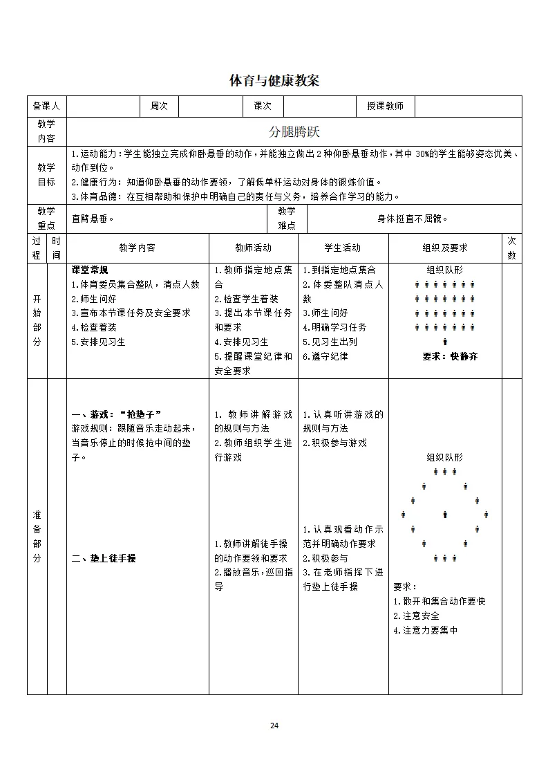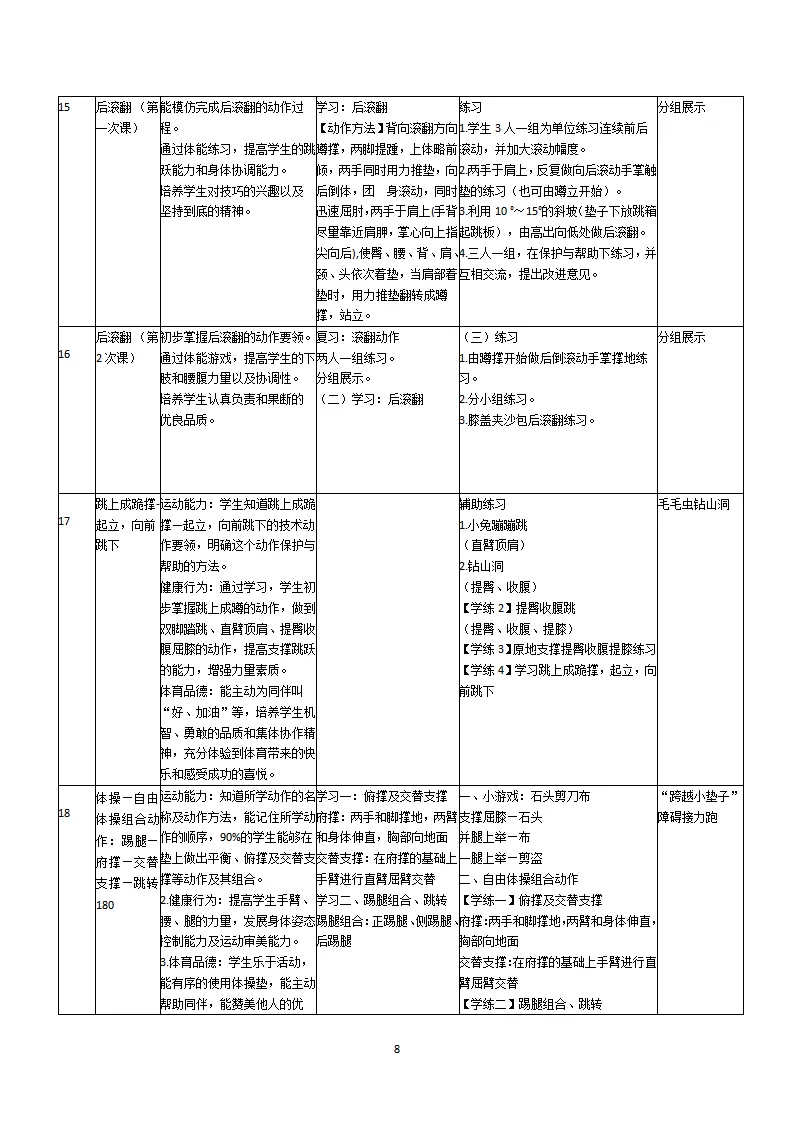 >水平三体操18课时大单元教学设计教案课时计划word版高质量