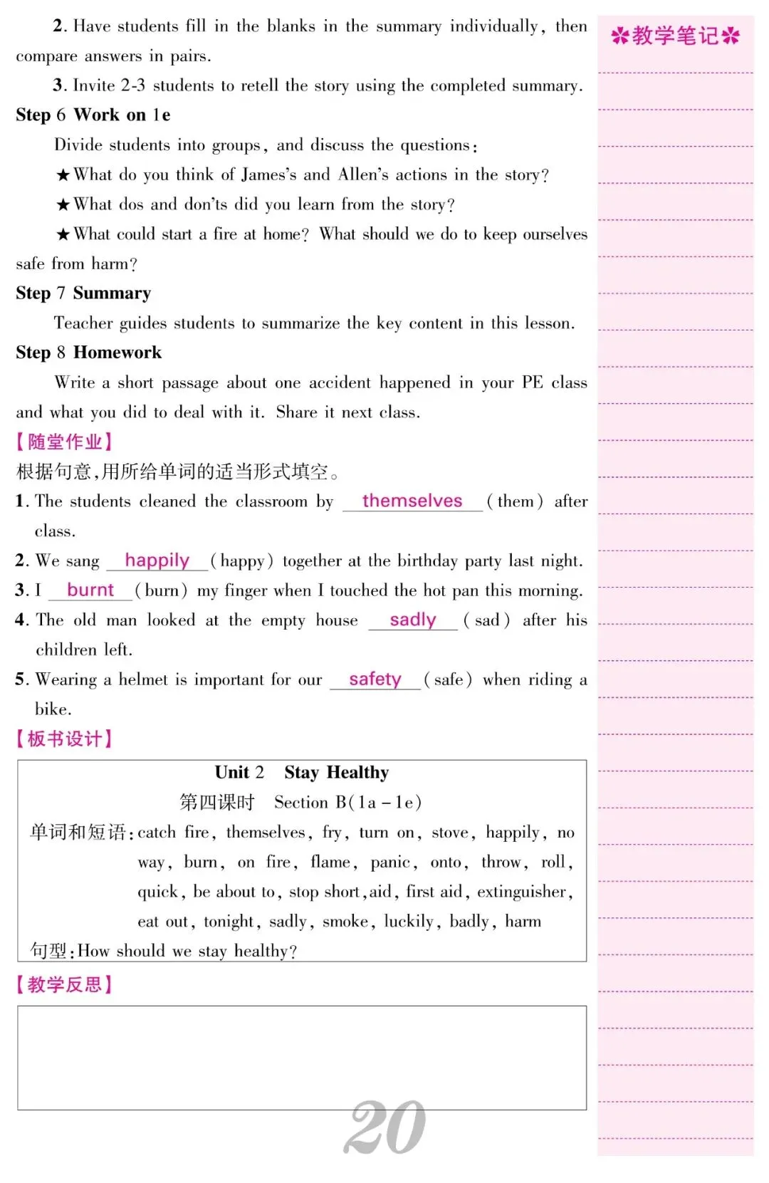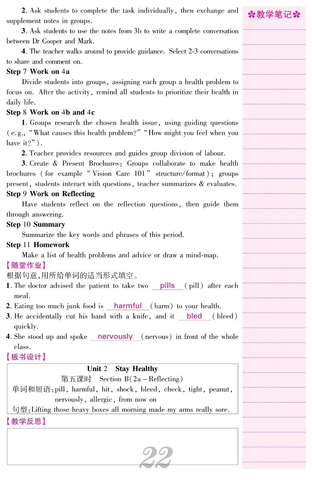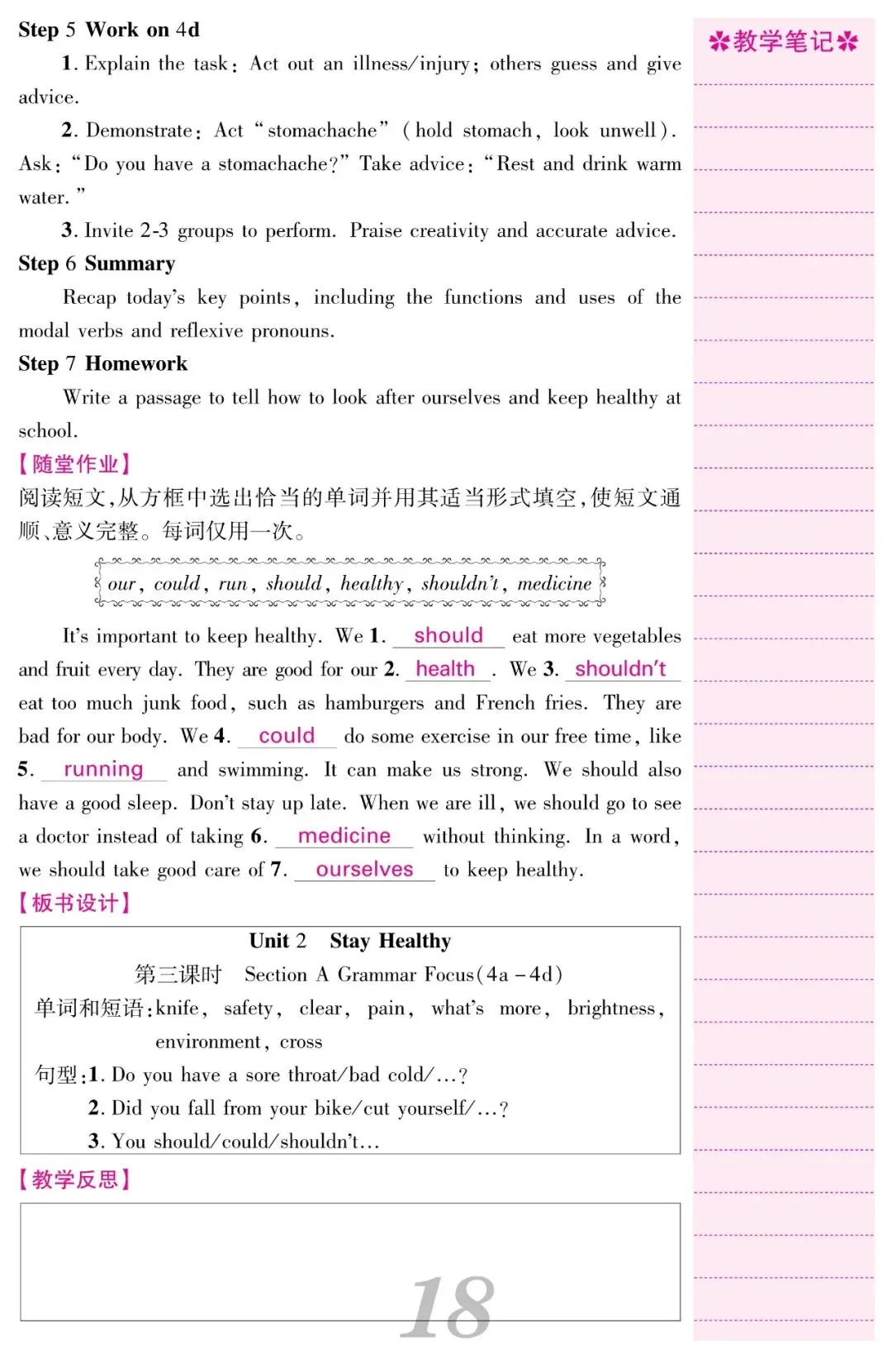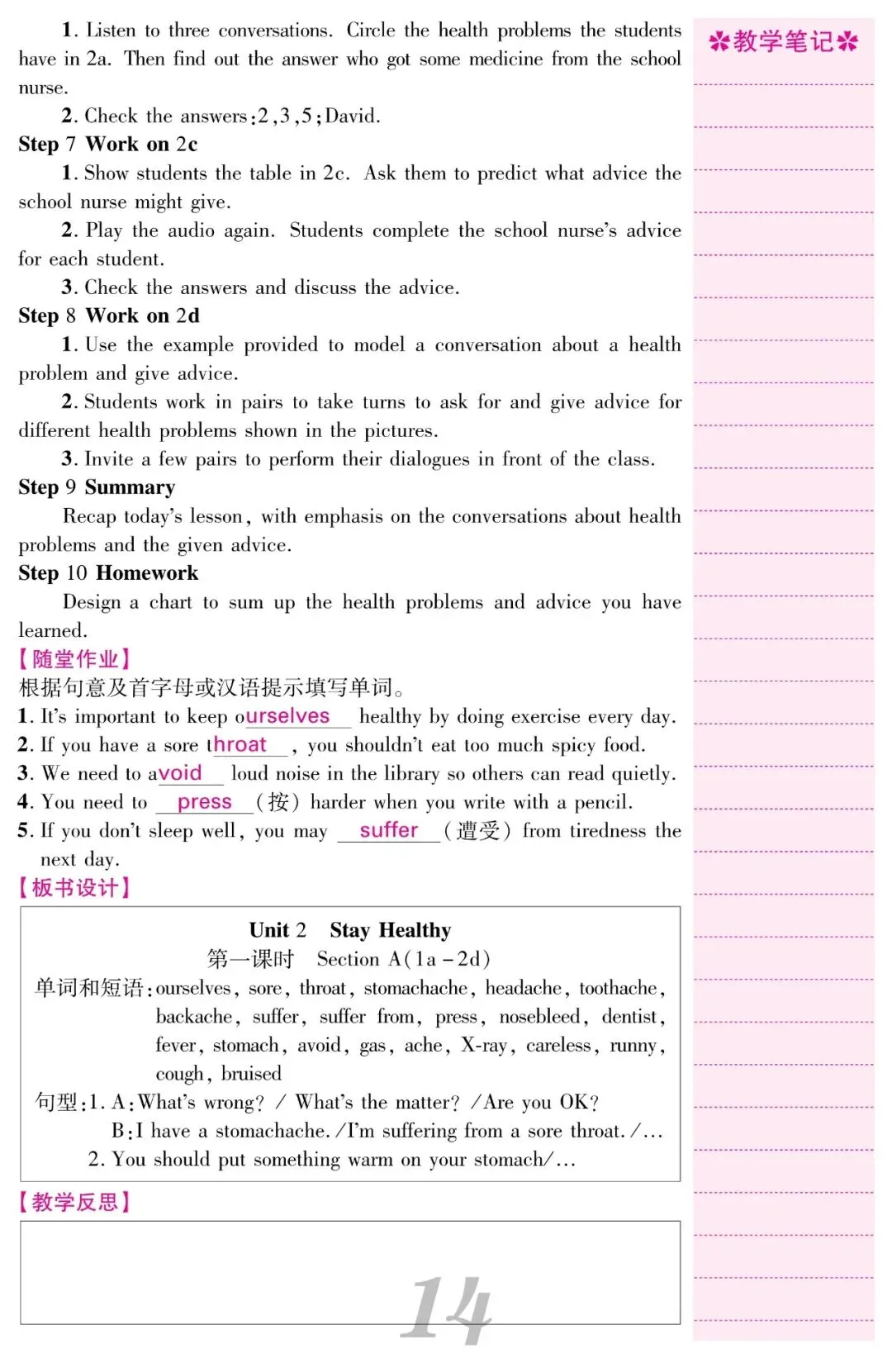 2026春人教新八下英语教案教学设计《Unit 2 Stay Healthy》