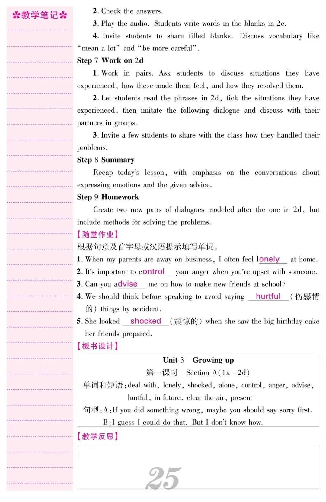 2026春人教新八下英语教案教学设计《Unit 3 Growing Up》