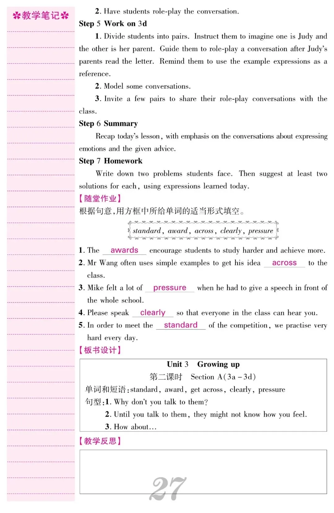 >2026春人教新八下英语教案教学设计《Unit 3 Growing Up》