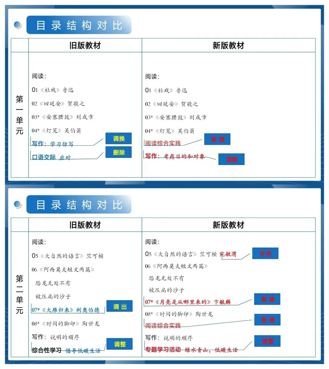 ✅ 6个单元逐课对比旧版,新增/删除/调整一目了然