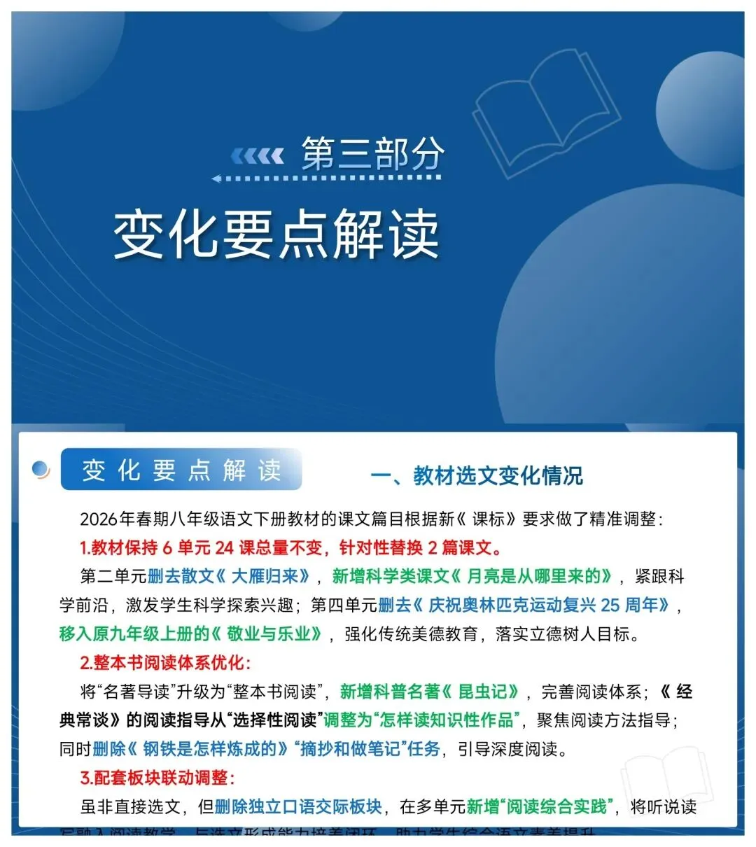 老师们!2026春八下语文新教材虽然变动不是特别大但是认真解读,还是有很多变化的🌷