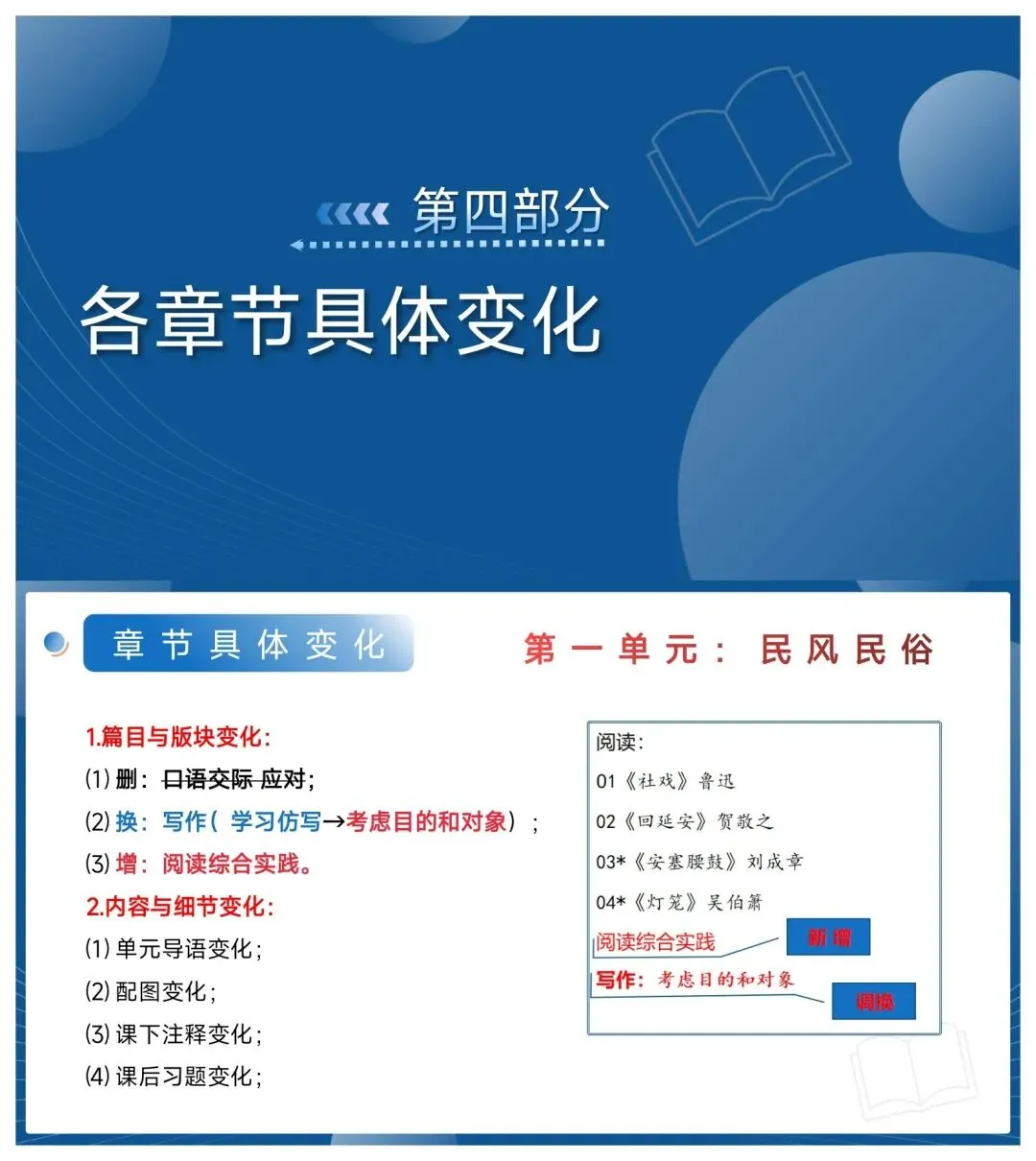 没摸清变化就备课,很容易教错重点!这份课件把目录对比、整体变化、章节细节、教学安排全拆明白了: