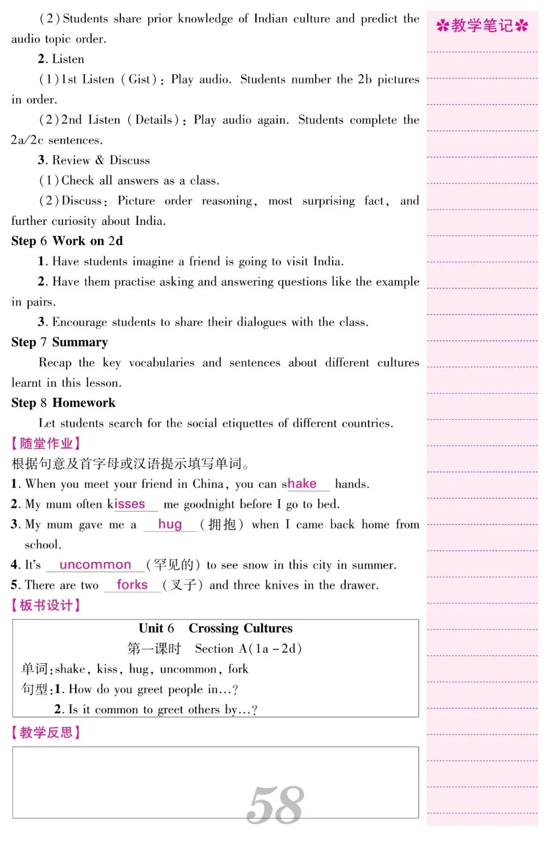 2026春人教新八下英语教案教学设计《Unit 6 Crossing Cultures》