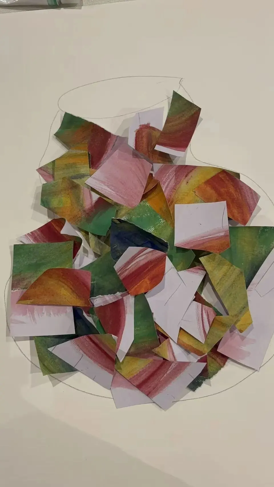 操作:参与者选择一张基底卡纸(花瓶、蝴蝶等形状),作为“容器”或“新篇章”的象征。在基底上自由移动、排列碎片,探索各种组合的可能性。