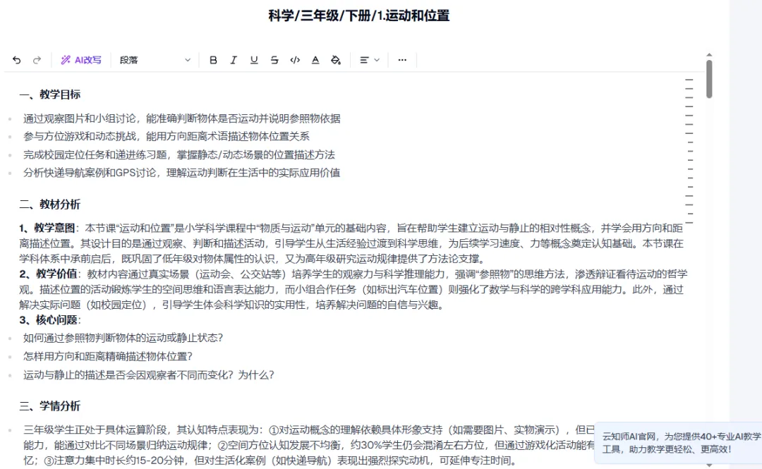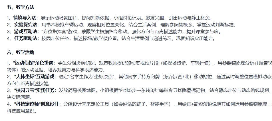 第二,他生成的教案我自己看了,不像其他AI生成的那种就是泛泛而谈,或者过于复杂,过于简单。