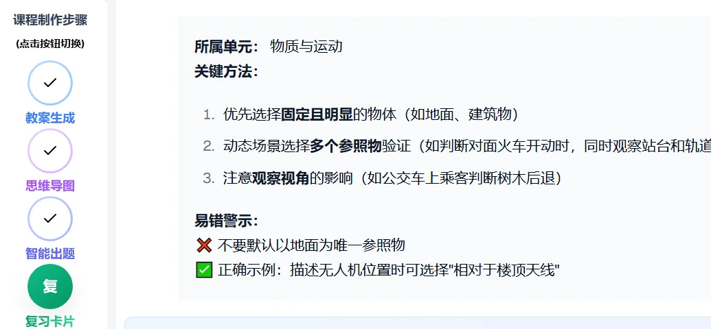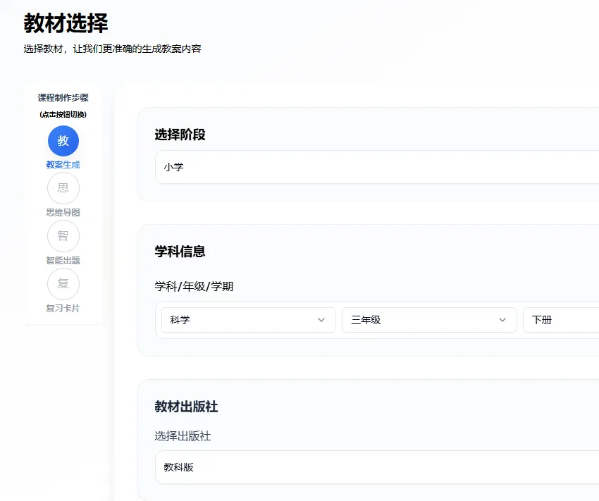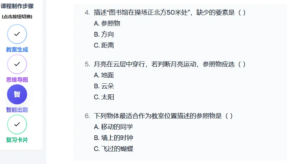 他是按照顺序来的,先是教案生成,再生成思维导图,再智能出题再复习卡片。