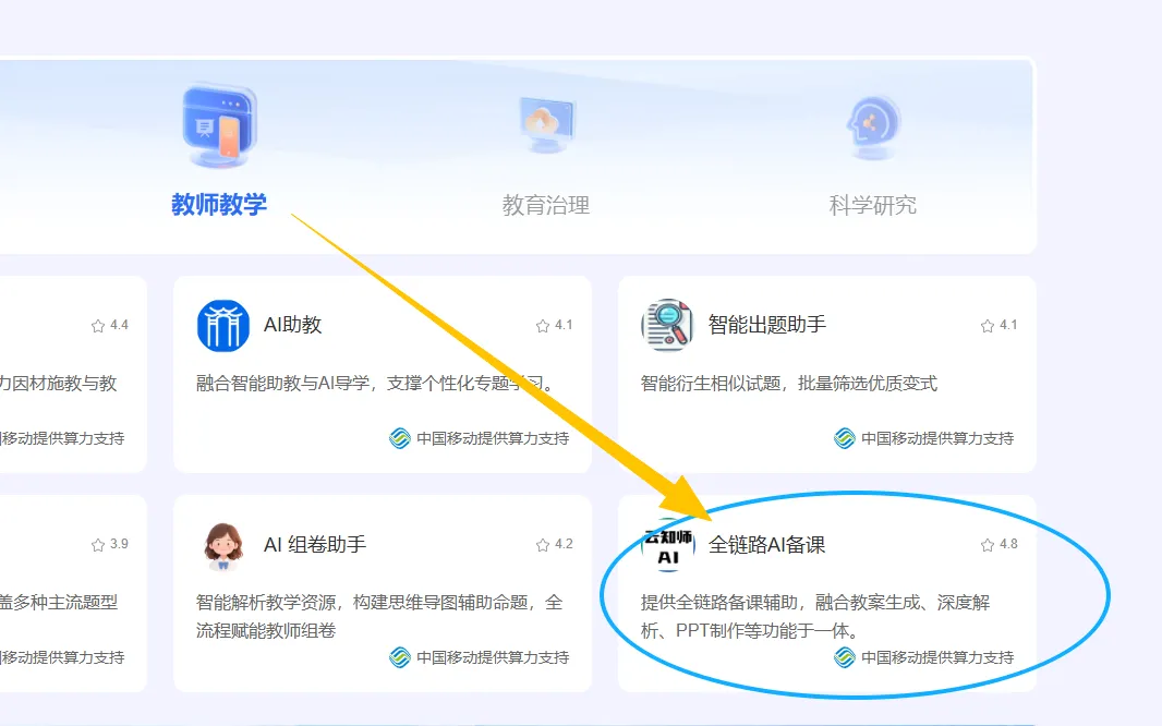 第四步,点击目前的最后面一个:全链路AI备课:云知师AI